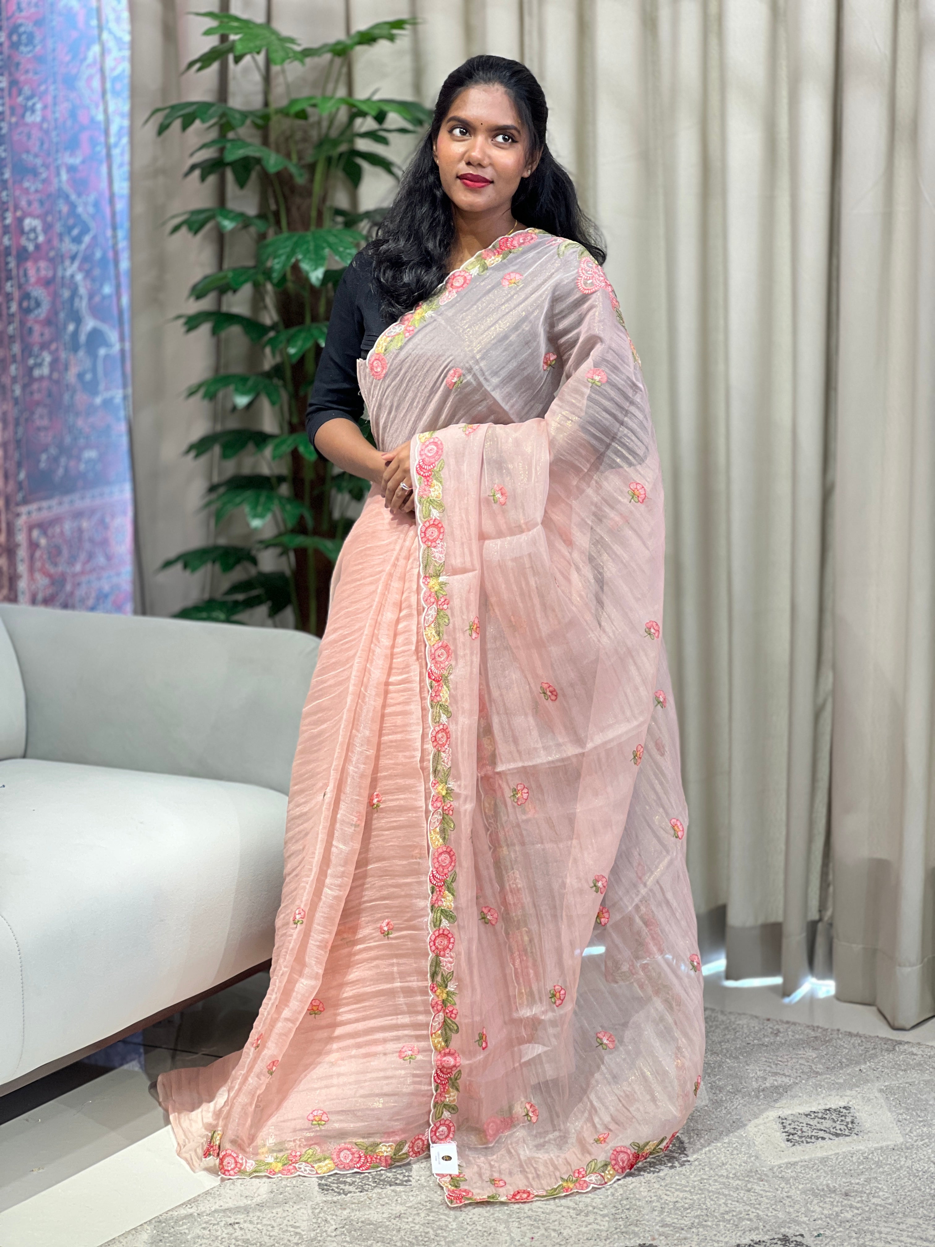 Floral Machine Embroidery Detailed Shimmer Organza Saree | BLD1809 Floral Machine Embroidery Detailed Shimmer Organza Saree | BLD1809