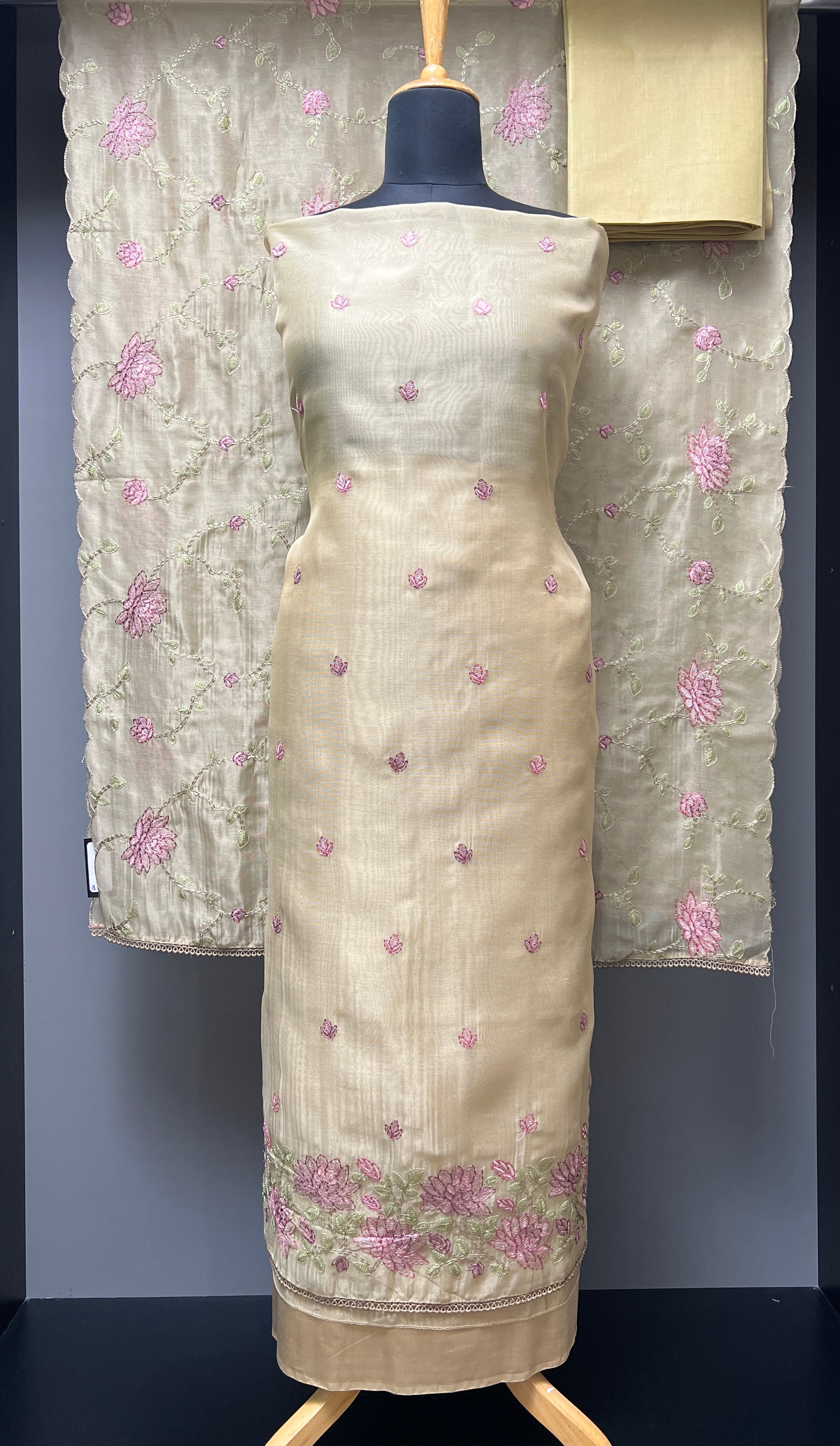 - Style: Machine Embroidery, Scattered Floral Buta, Floral Lotus Embroidered Lower Hem Portion, Lace Edges