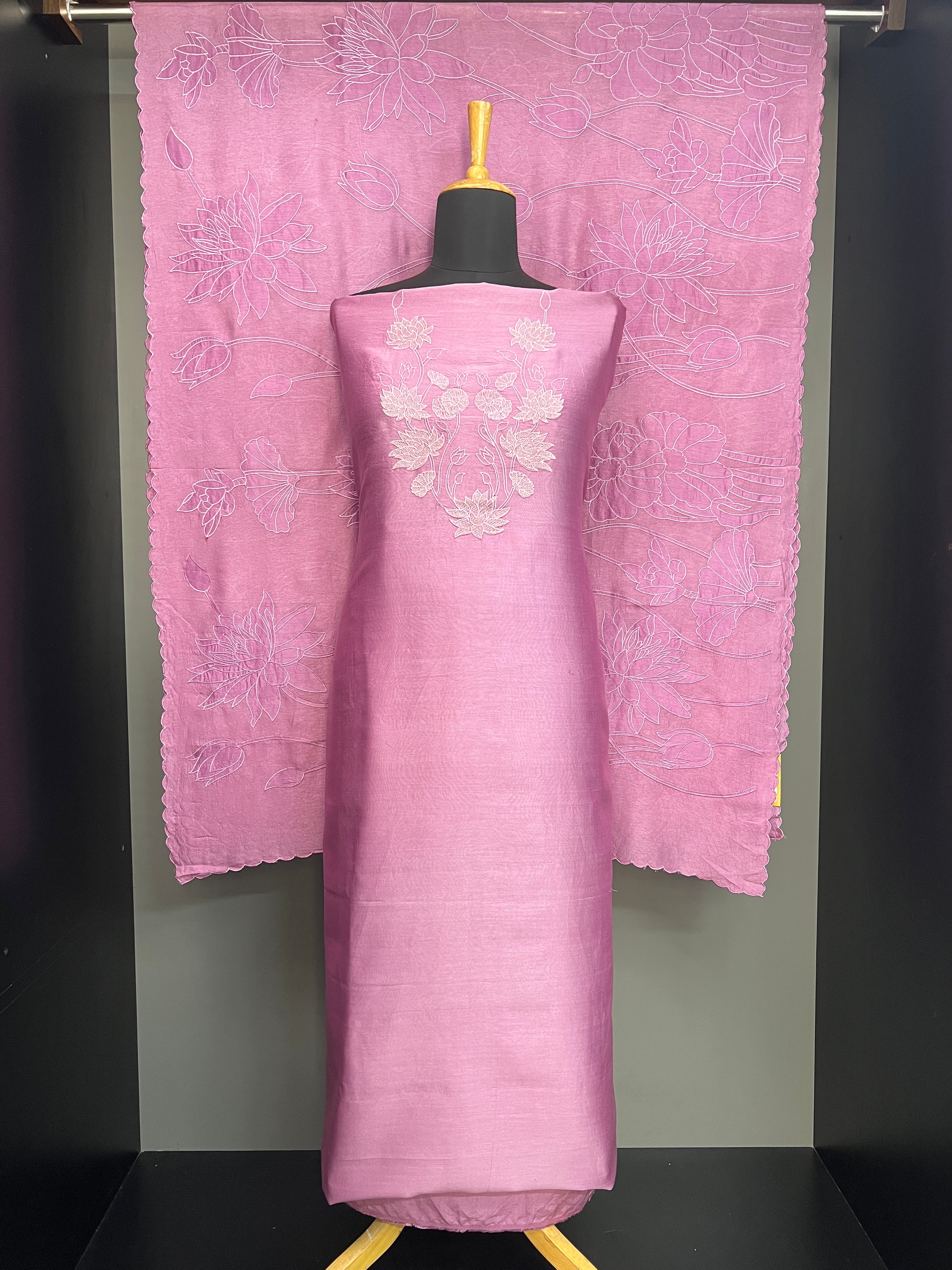 • Floral Machine Embroidery Detailed Tussar Salwar Set | MM320