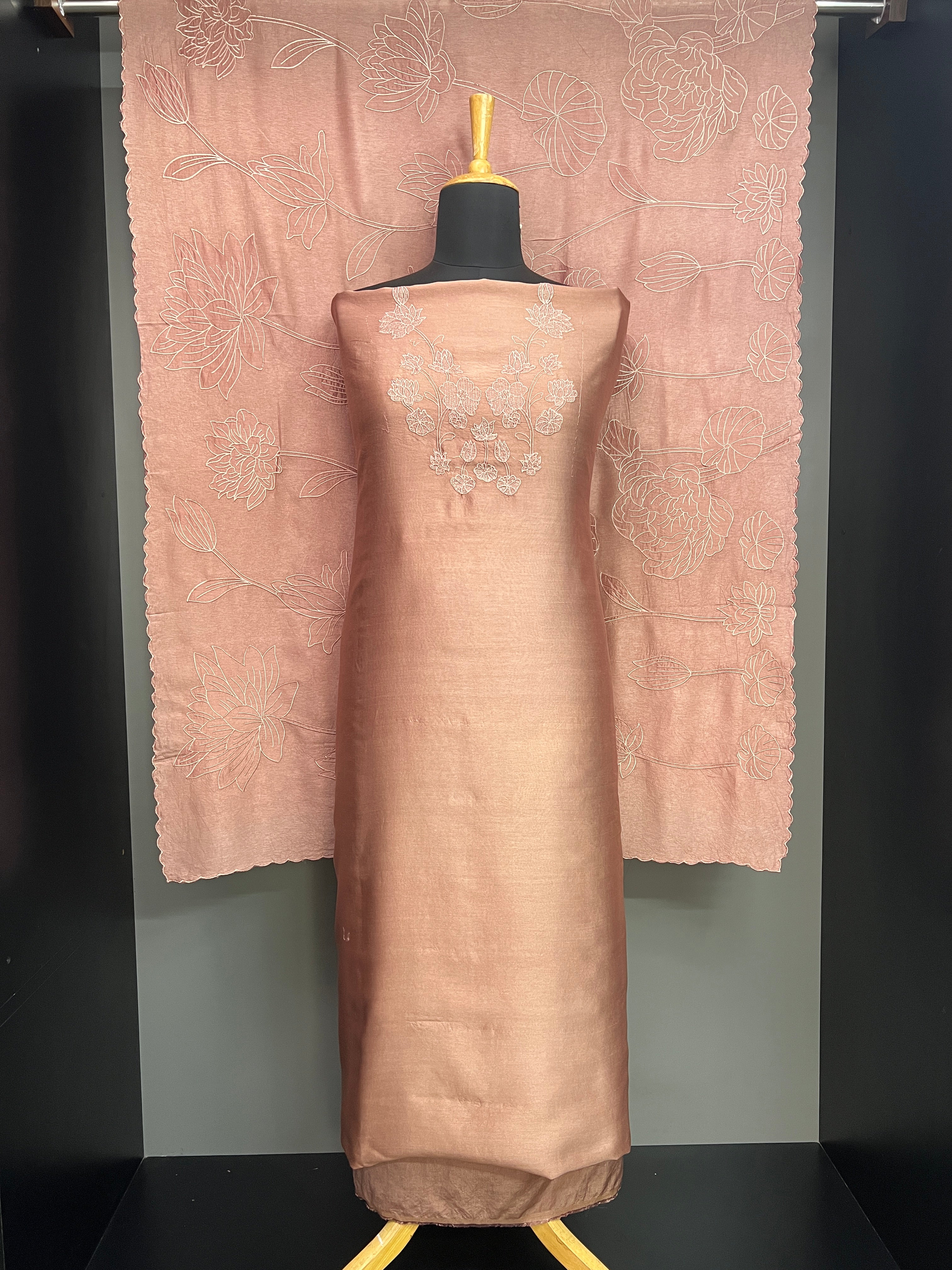 • Floral Machine Embroidery Detailed Tussar Salwar Set | MM325
