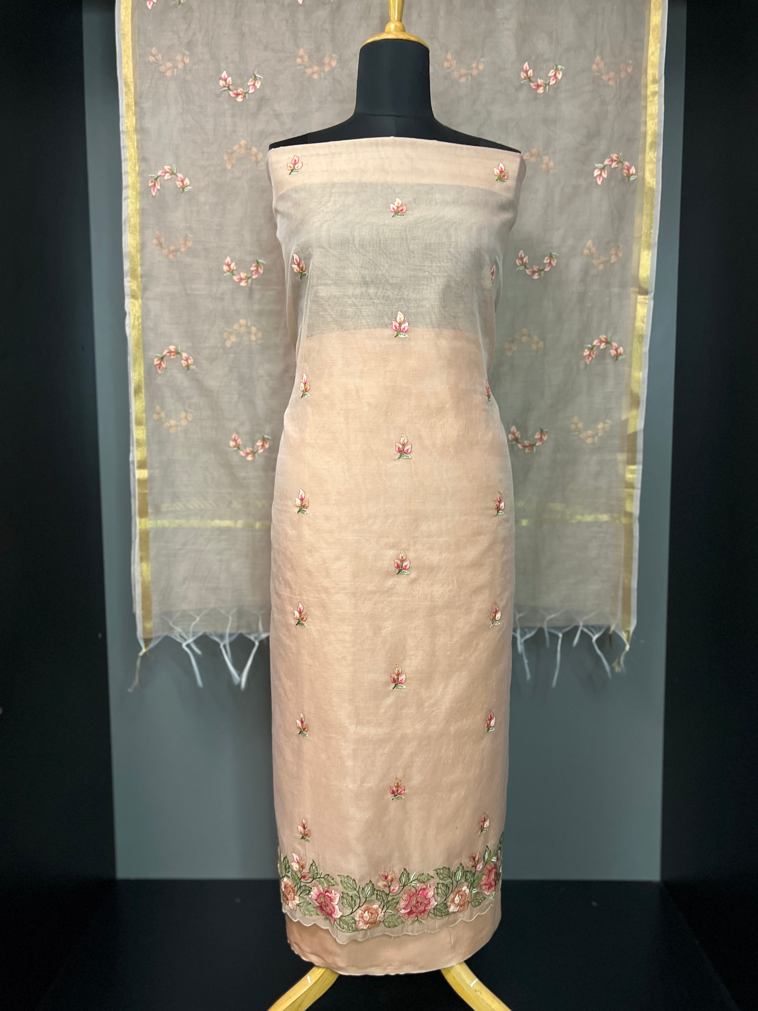 - Style:Floral Machine Embroidery,Golden Zari Border