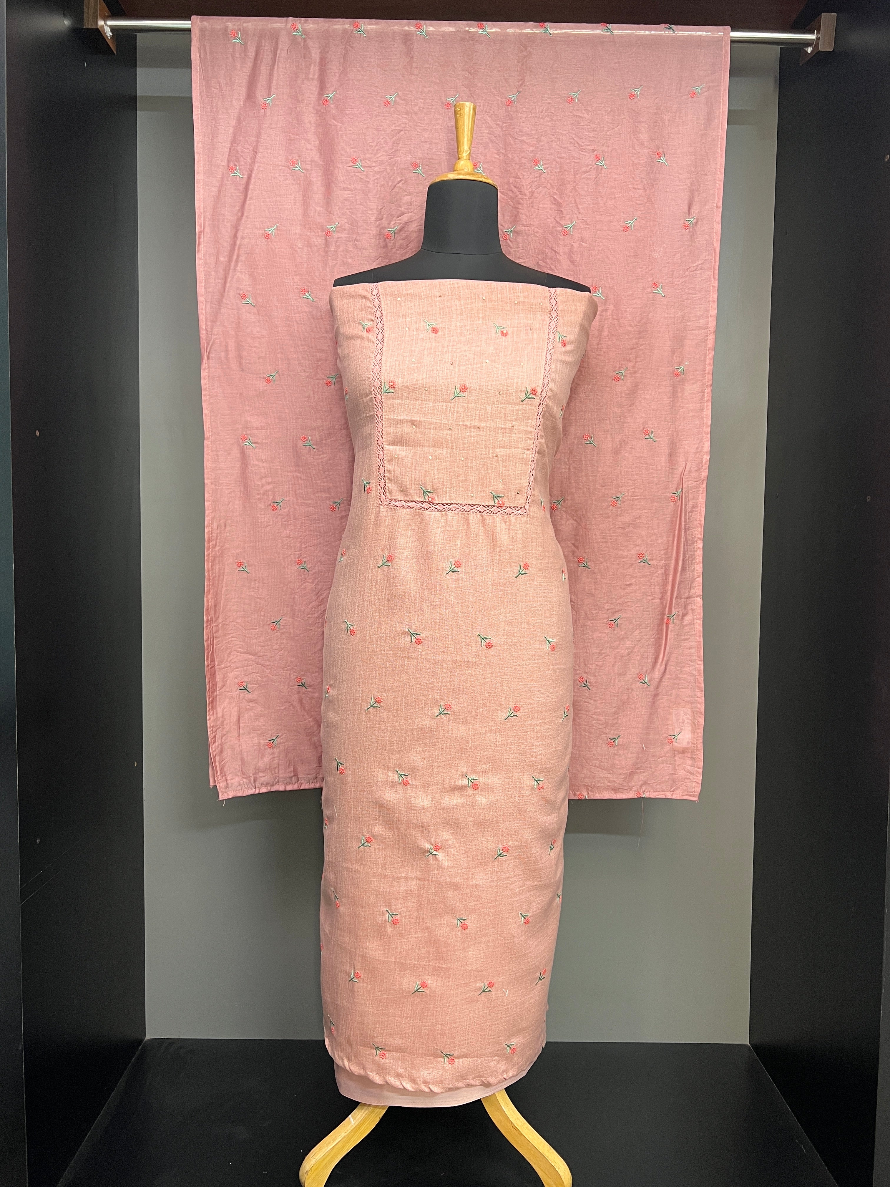 • Floral Machine Embroidery Semi Linen Salwar Set | SW2422