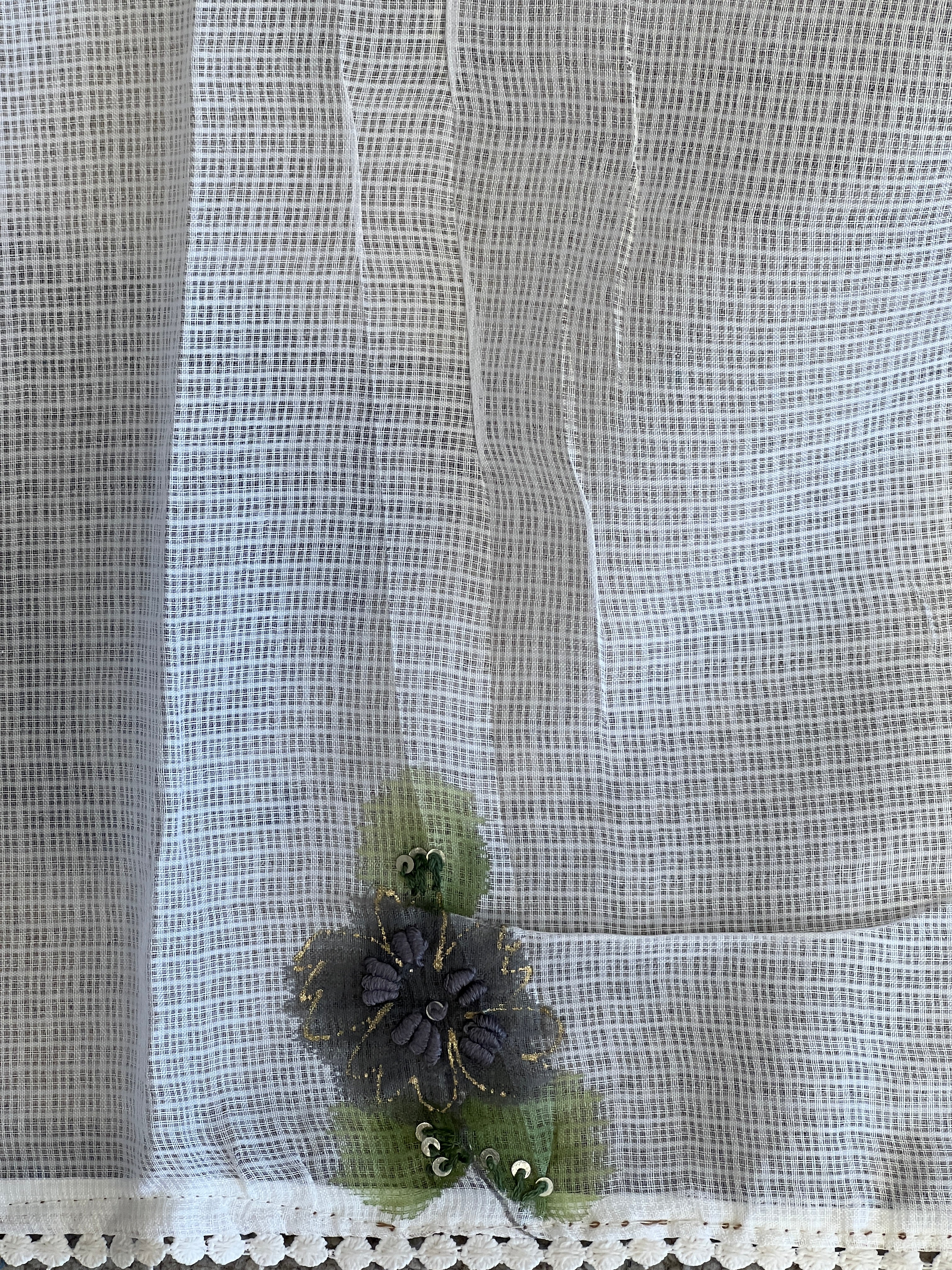 • Style: Hand Painted Floral Pattern With Embroidery & Sequins Highlight, Lace Edges