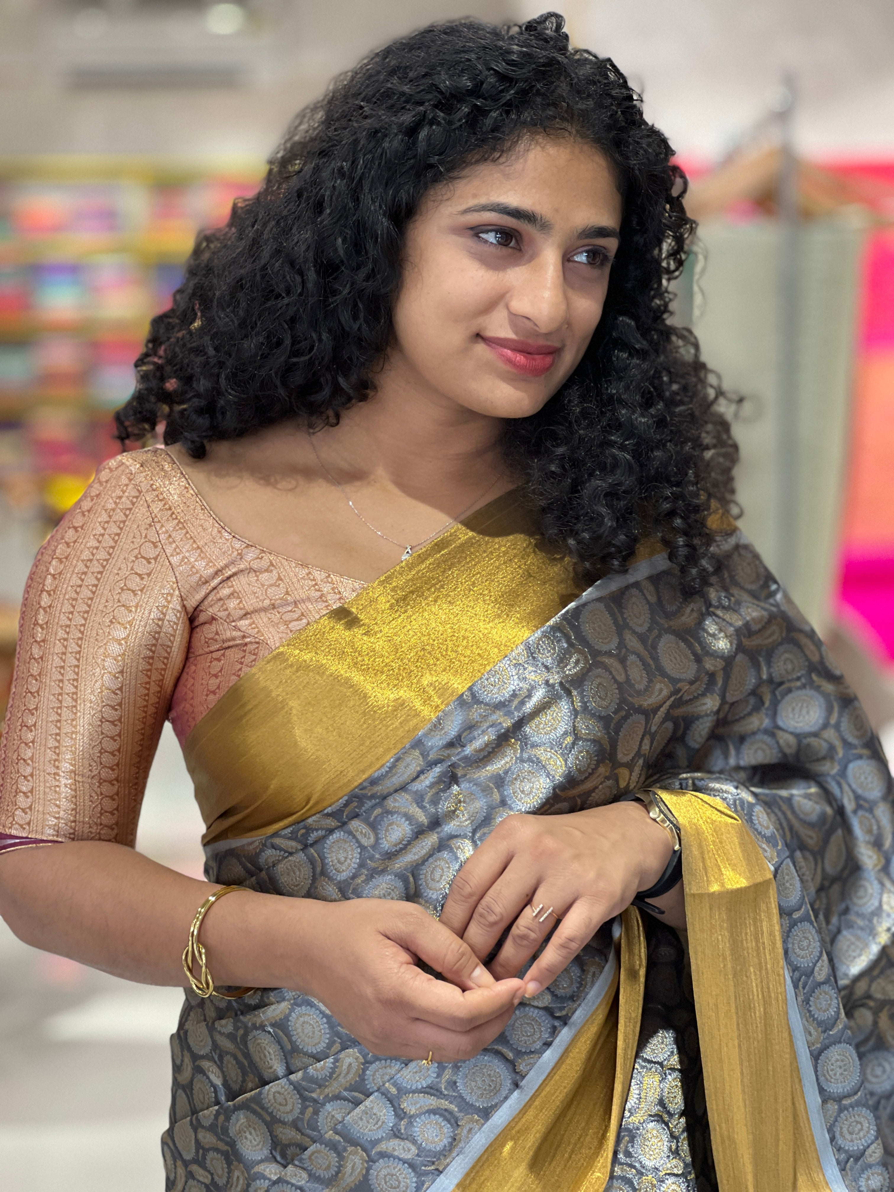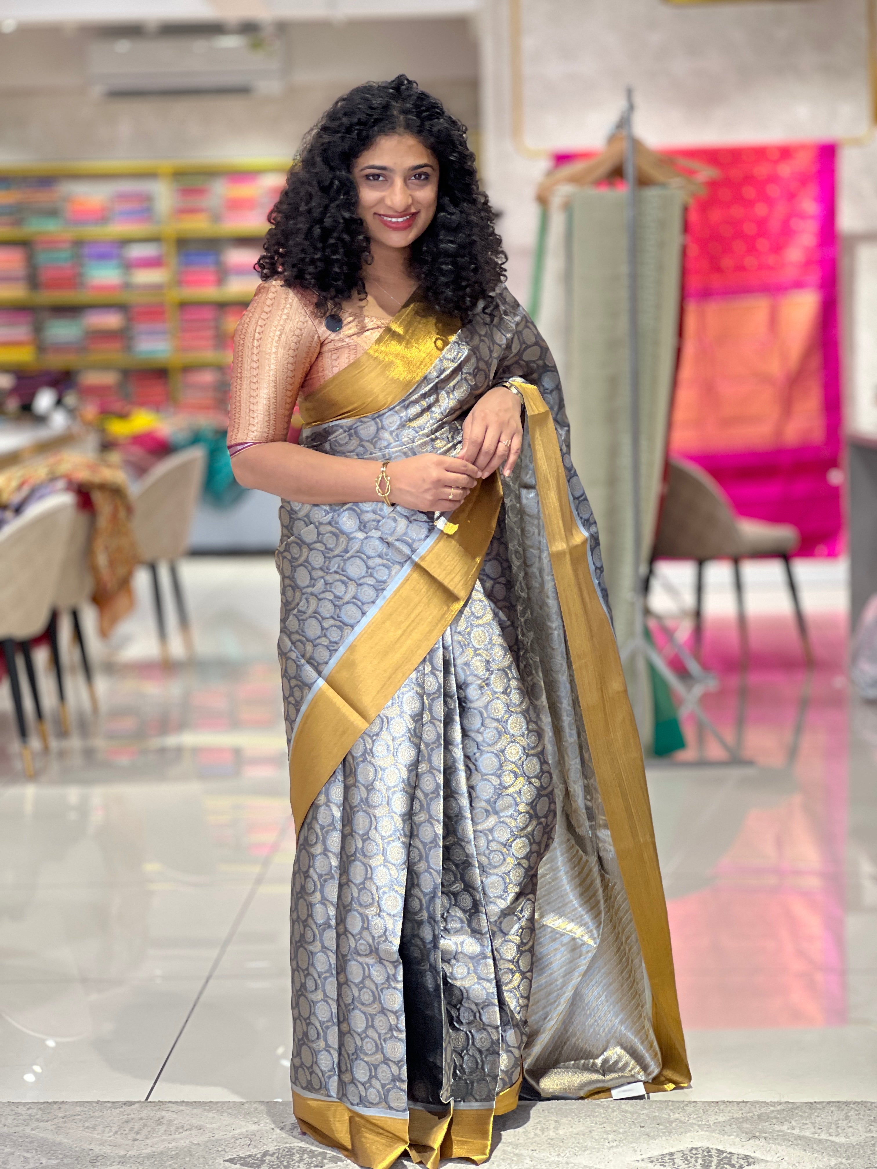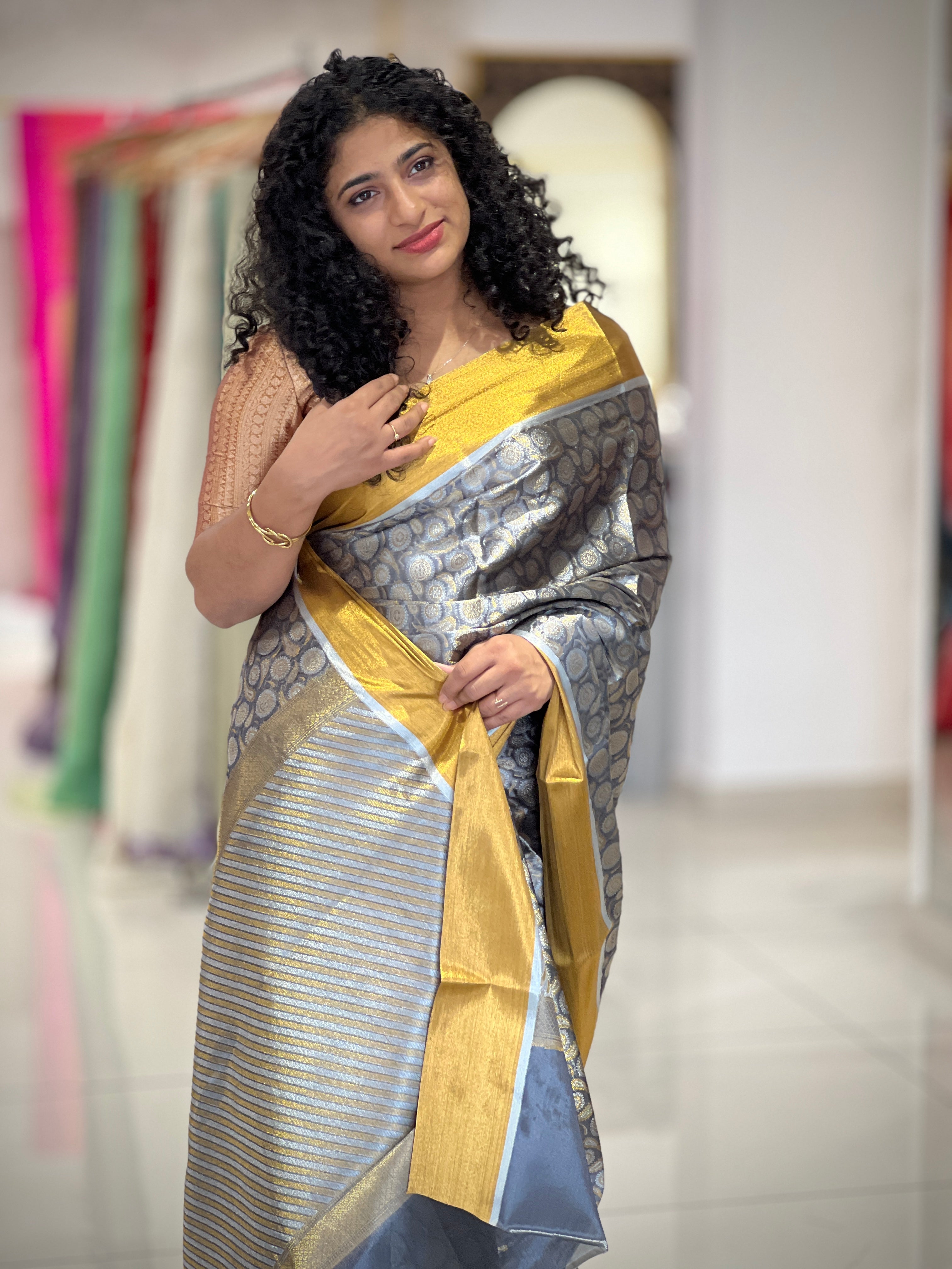 - Style: Floral Pattern and Diagonal Stripe Weaved Pallu Design