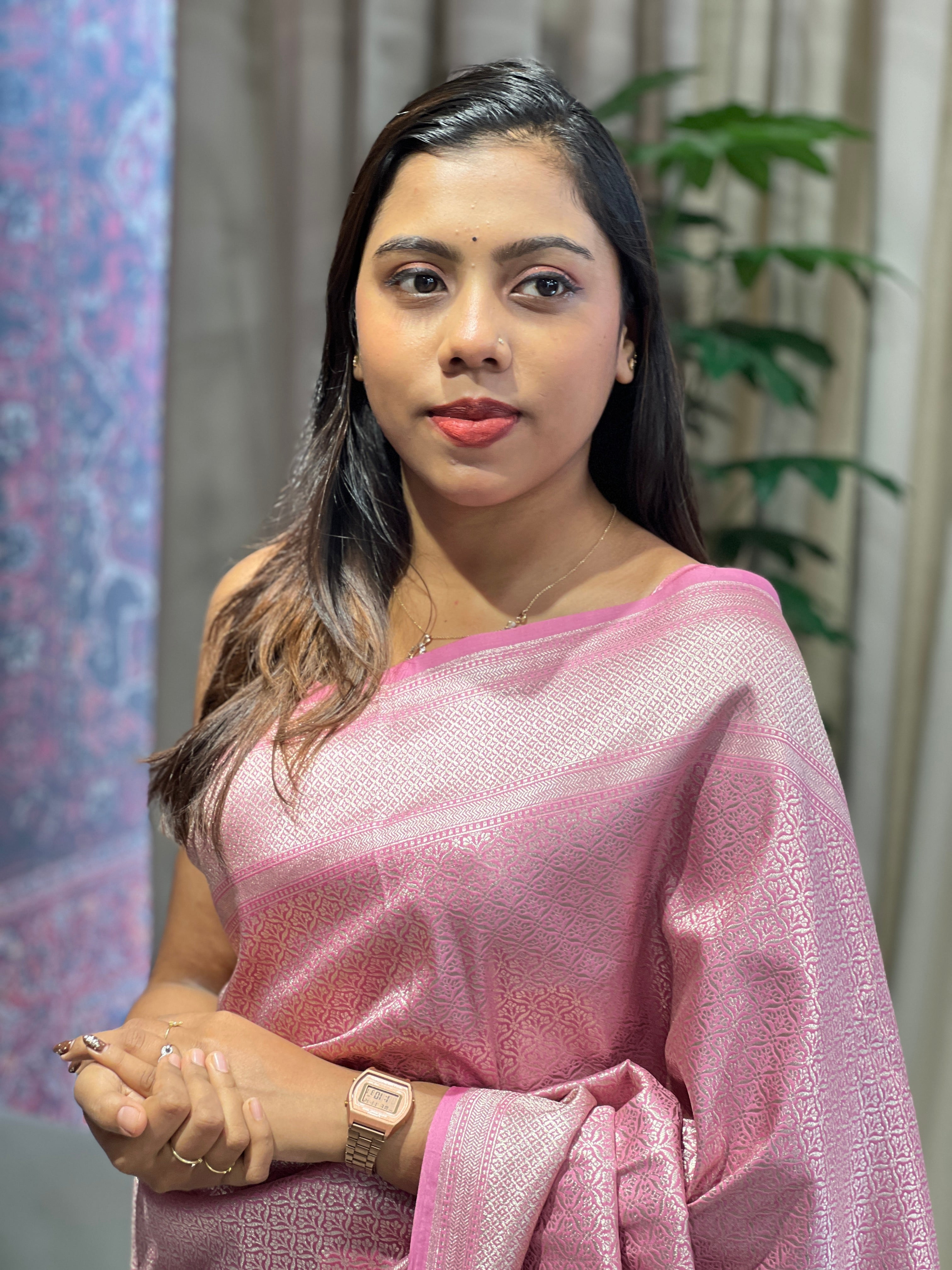 - Style: Zari Weaving, Floral Pattern, Geometrical Pattened Pallu, Border Detailing