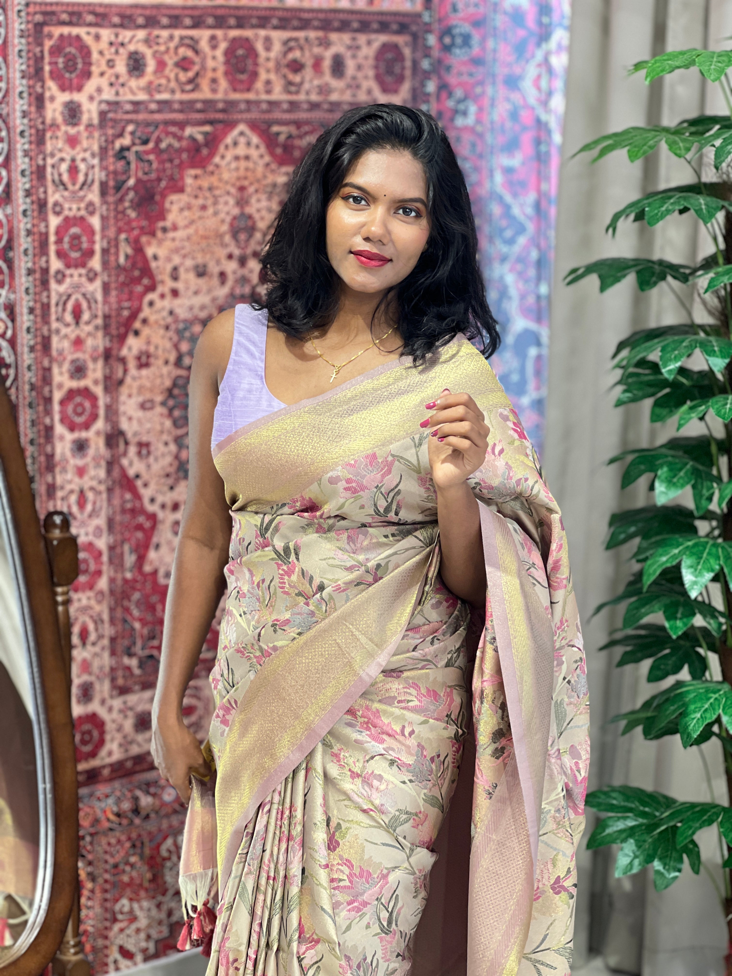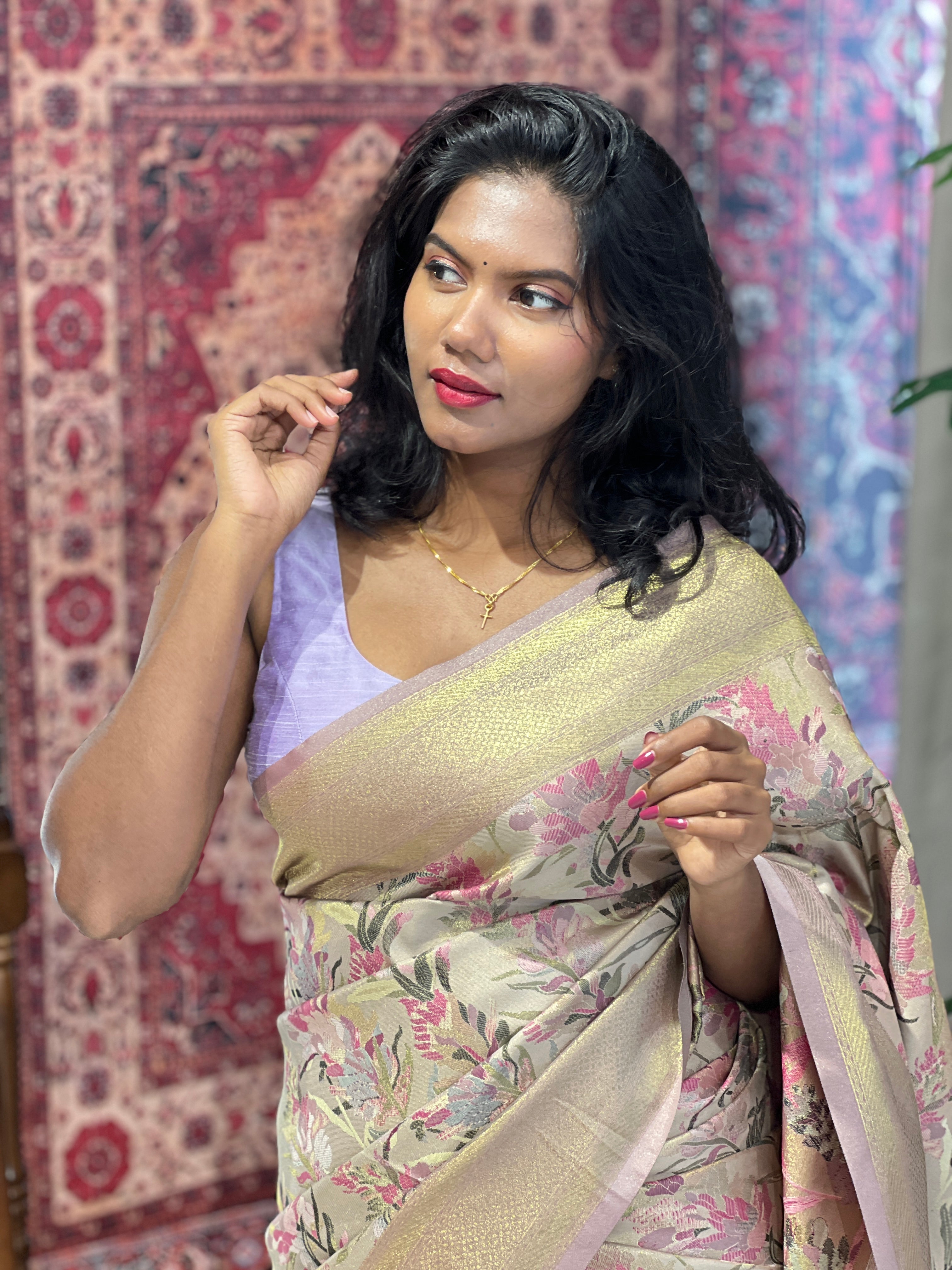 - Style: Tissue Weaved, Zari Detailing, Floral Thread Weaving Detailing, Brocade Pallu