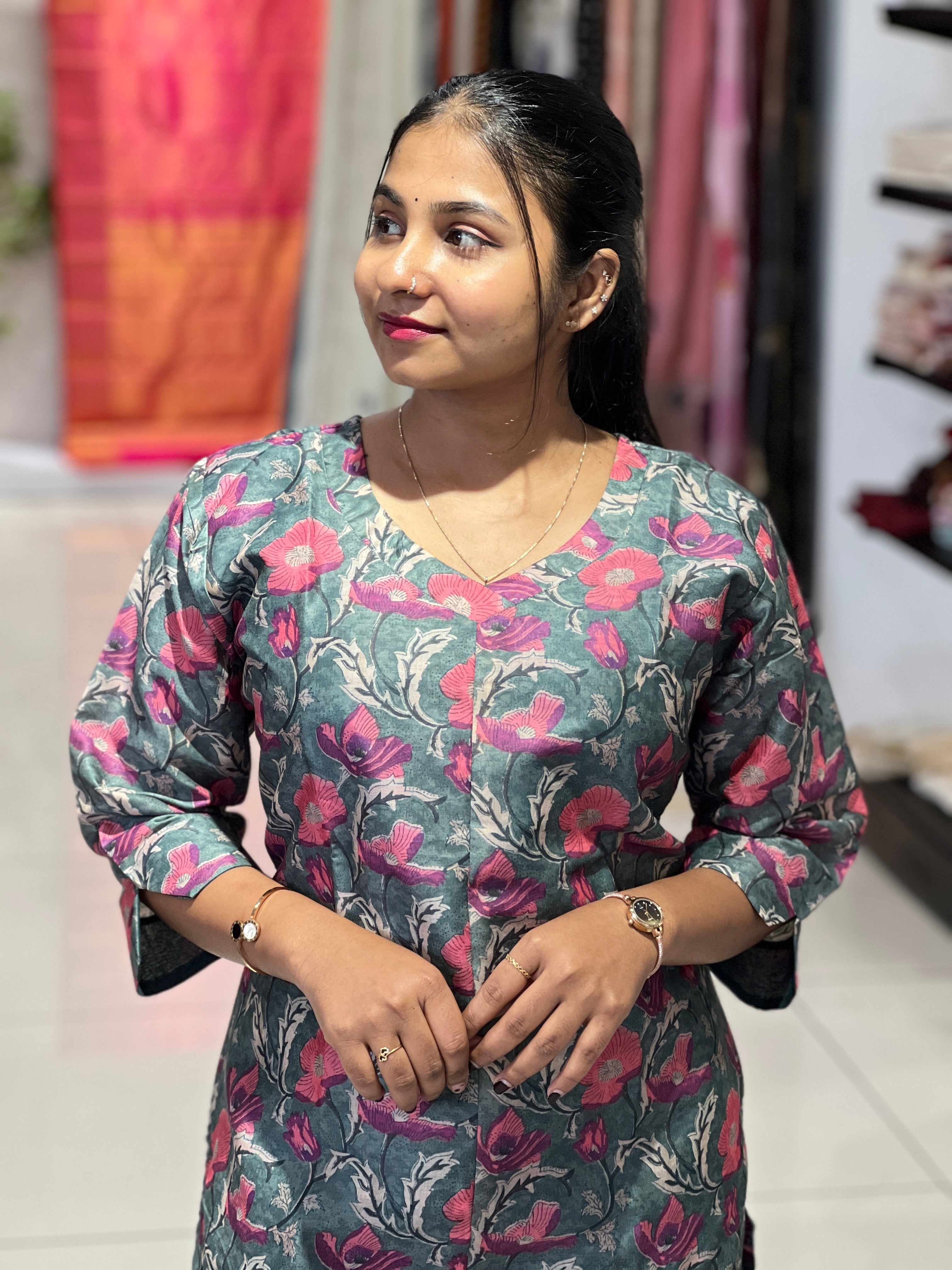 - Style: Floral Print Detailing, With Lining, Side Slit Pattern, Panel Detailing