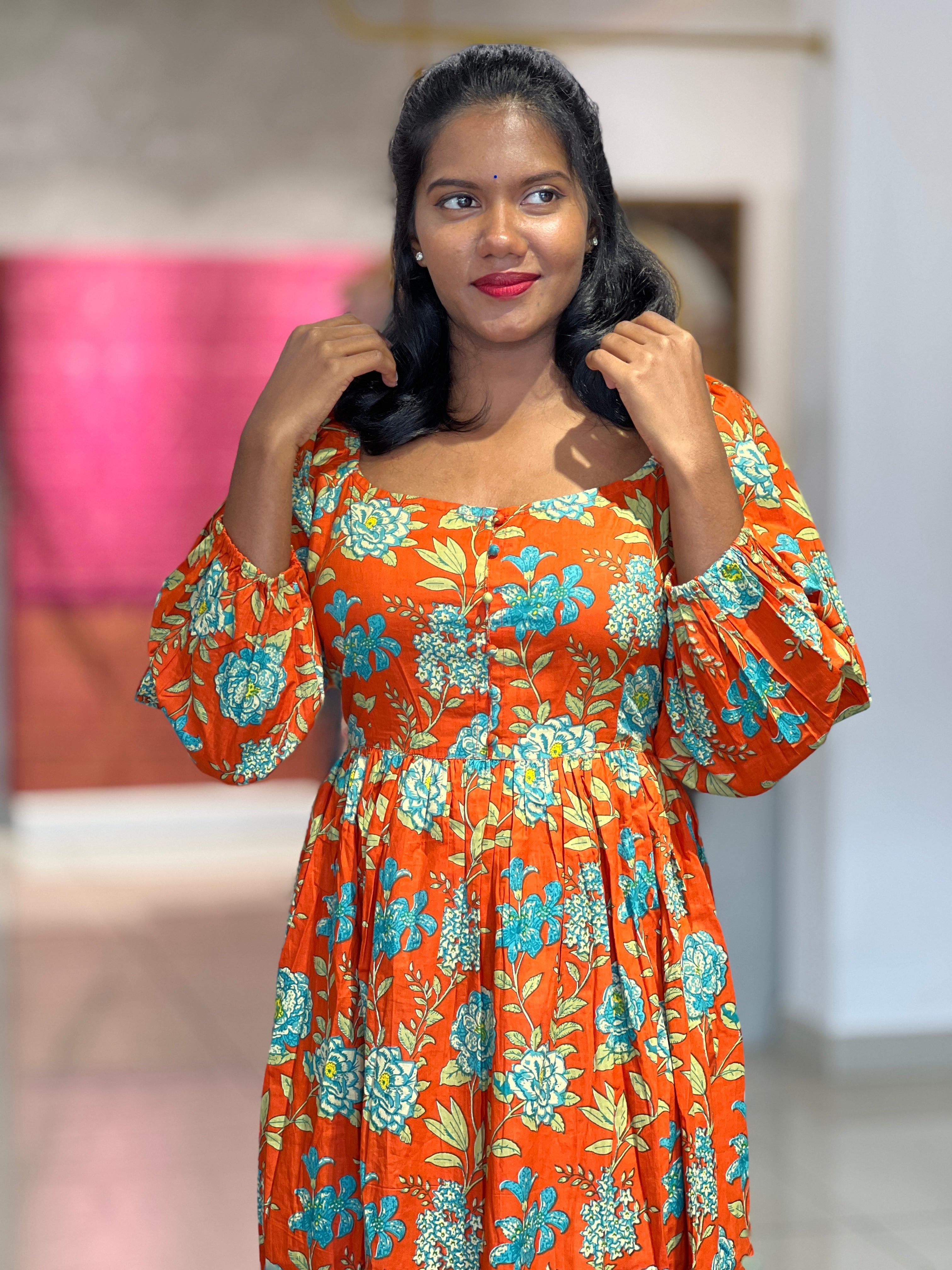 - Style: Floral Printed Pattern, Yoke Potly Detailing With Gathers.