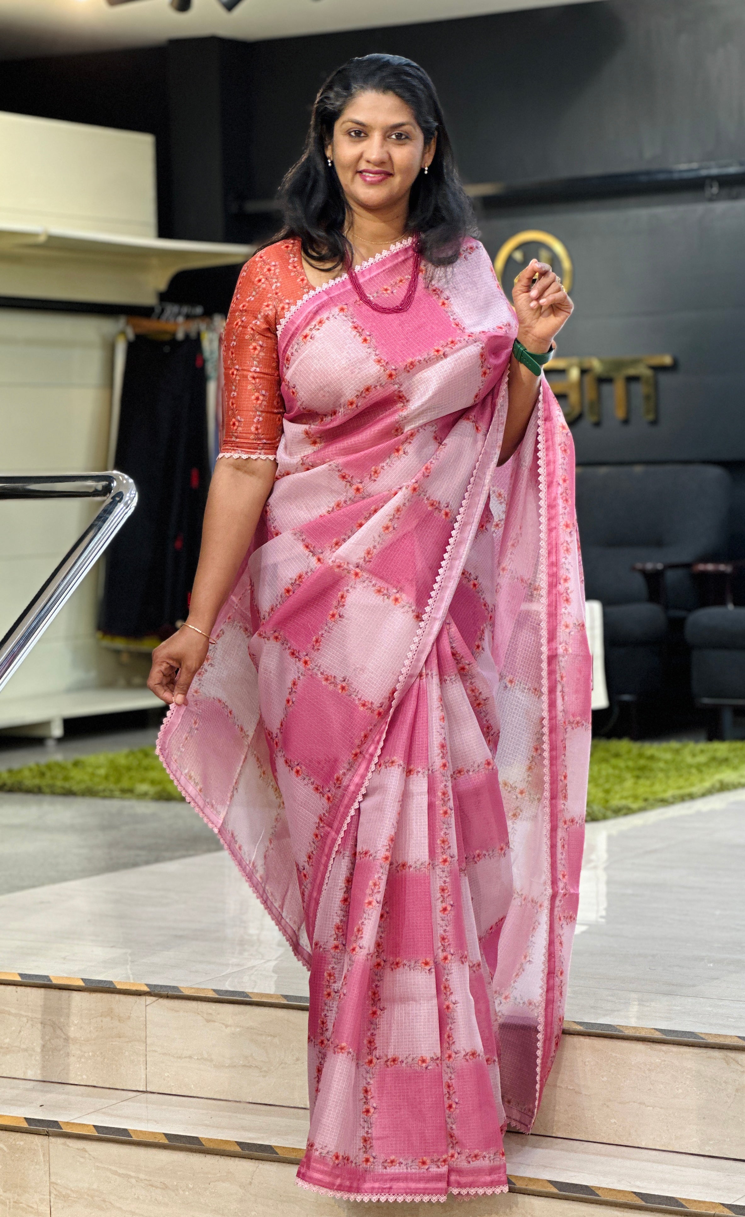 - Style: Check Pattern, Floral Print Detailing, Crochet Lace Detailed Edges