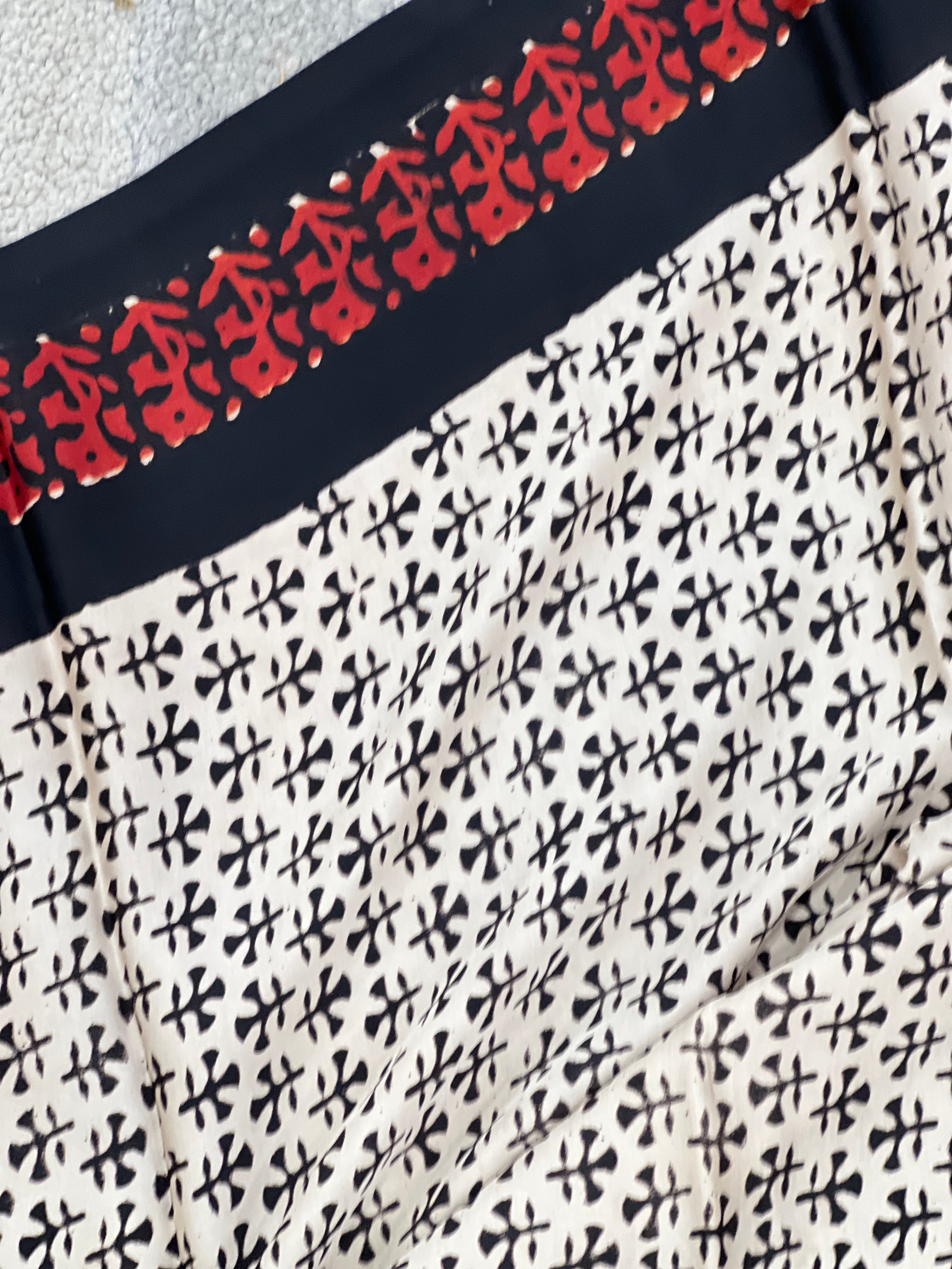 - Style: Block Printed, Floral Pattern, Contrast Borders, Stripe Patterned Pallu