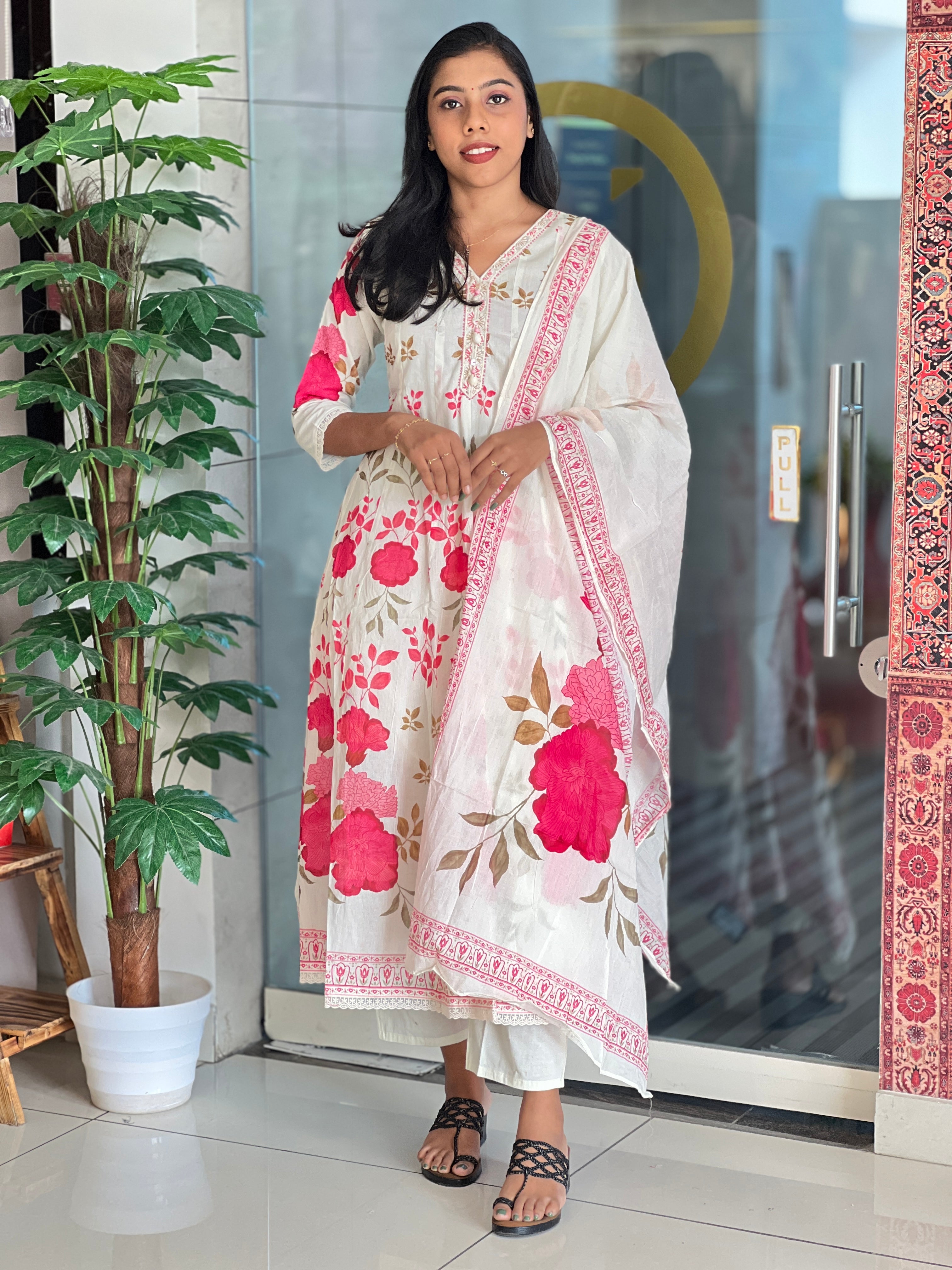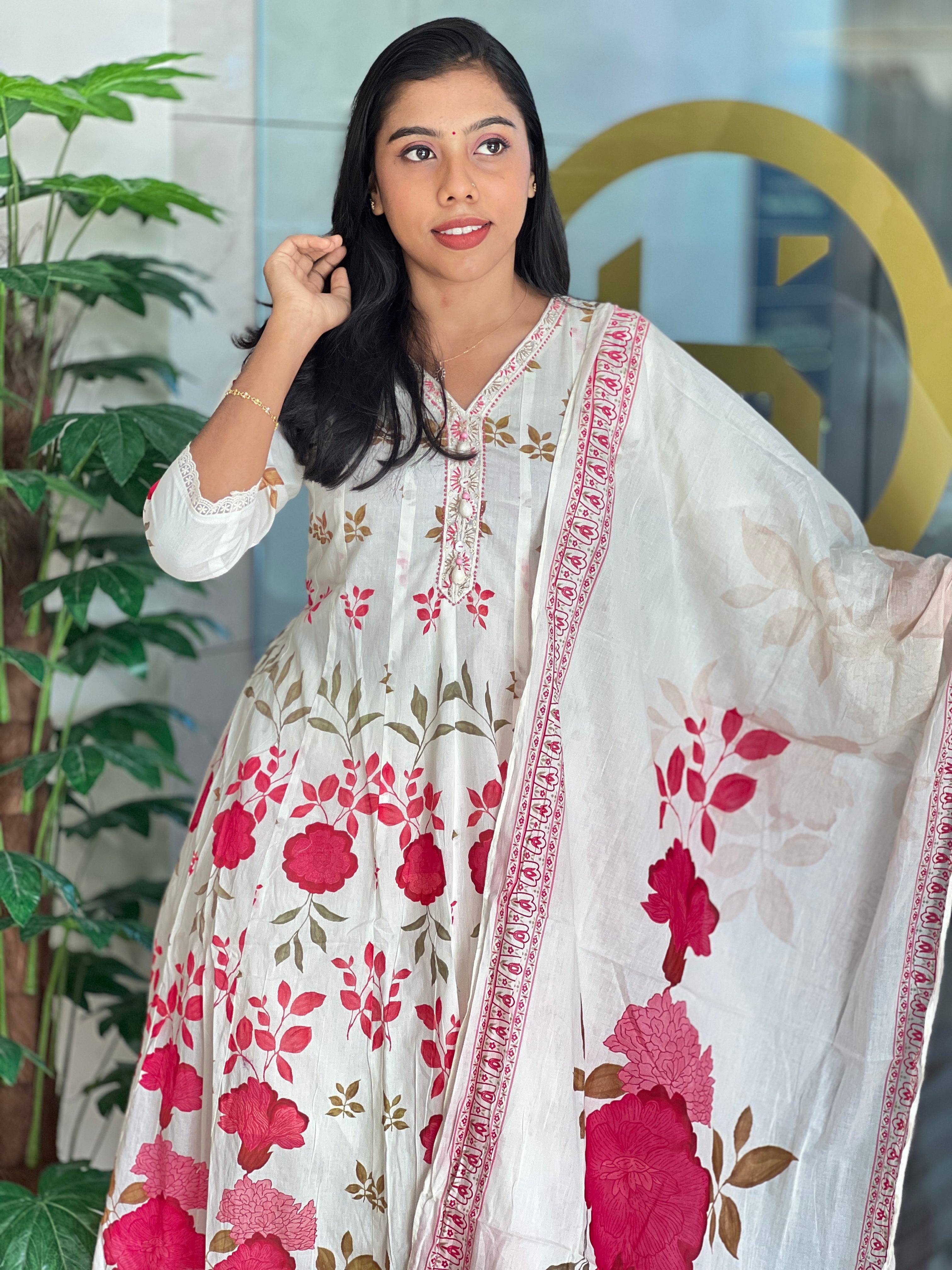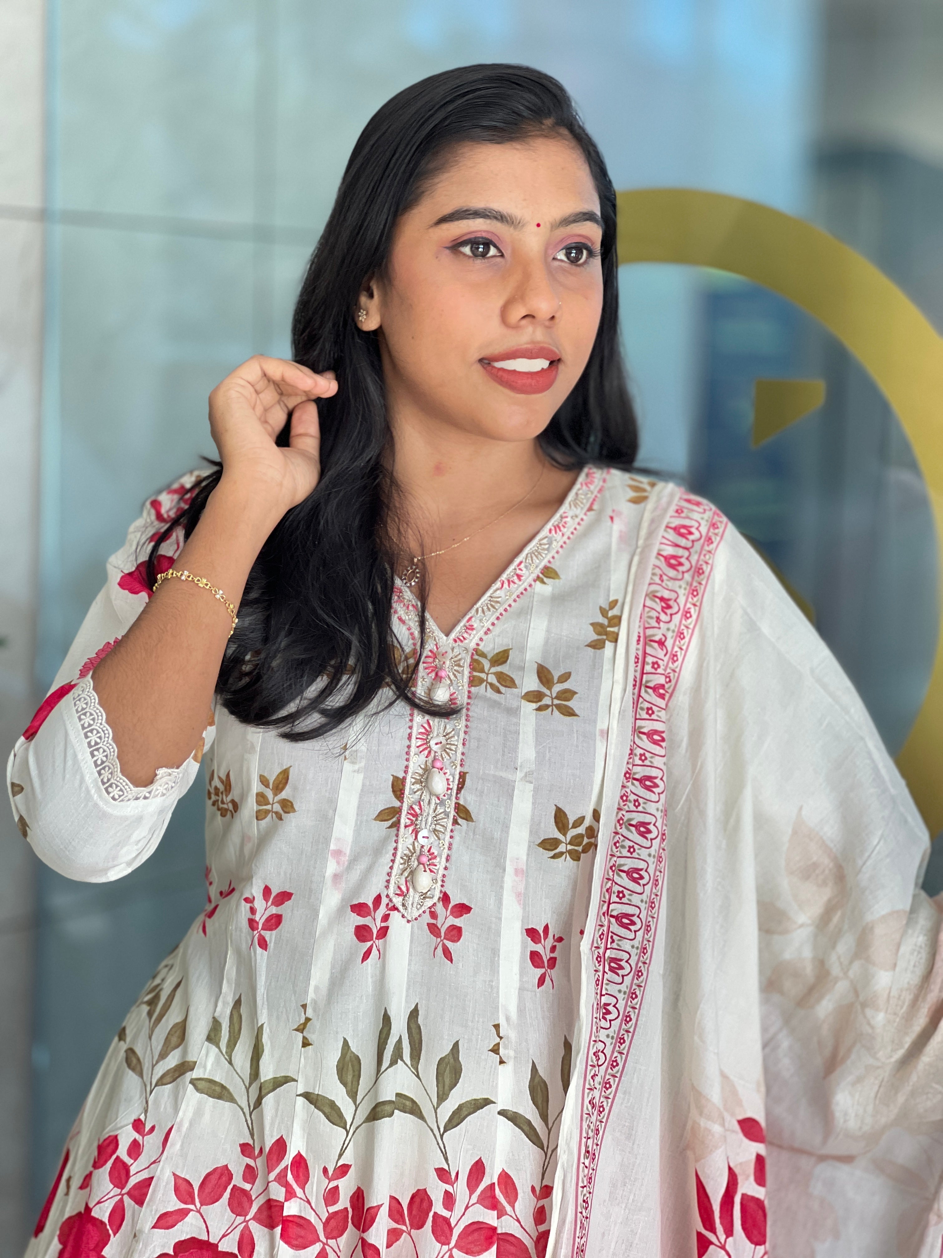 - Style: Floral Screen Print, Sequence, Beads & Shell Detailed Neck, Lace Detailing, A-Line Pattern