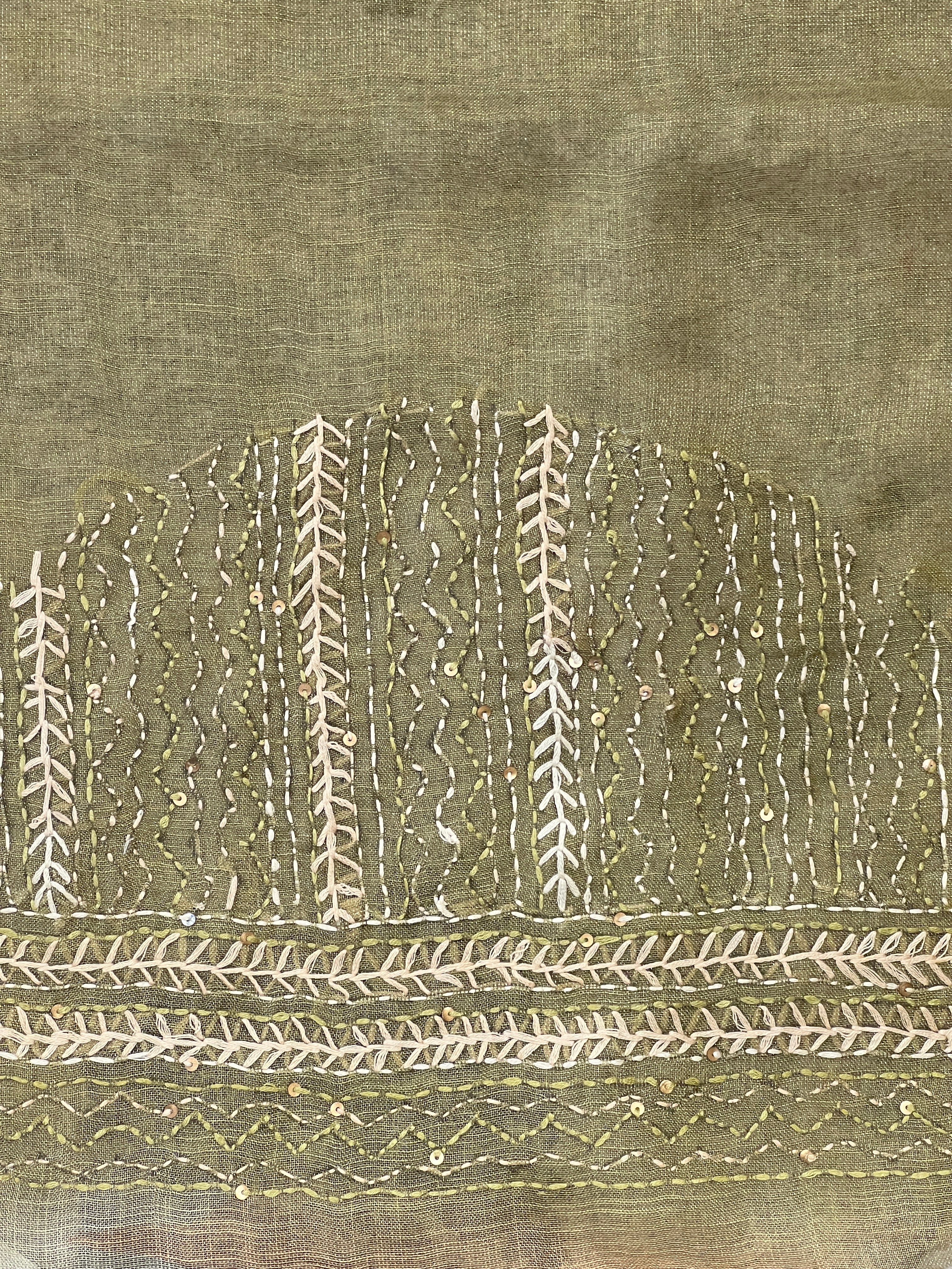 Floral Print With Hand Embroidered Tissue Linen Saree | BLD1922