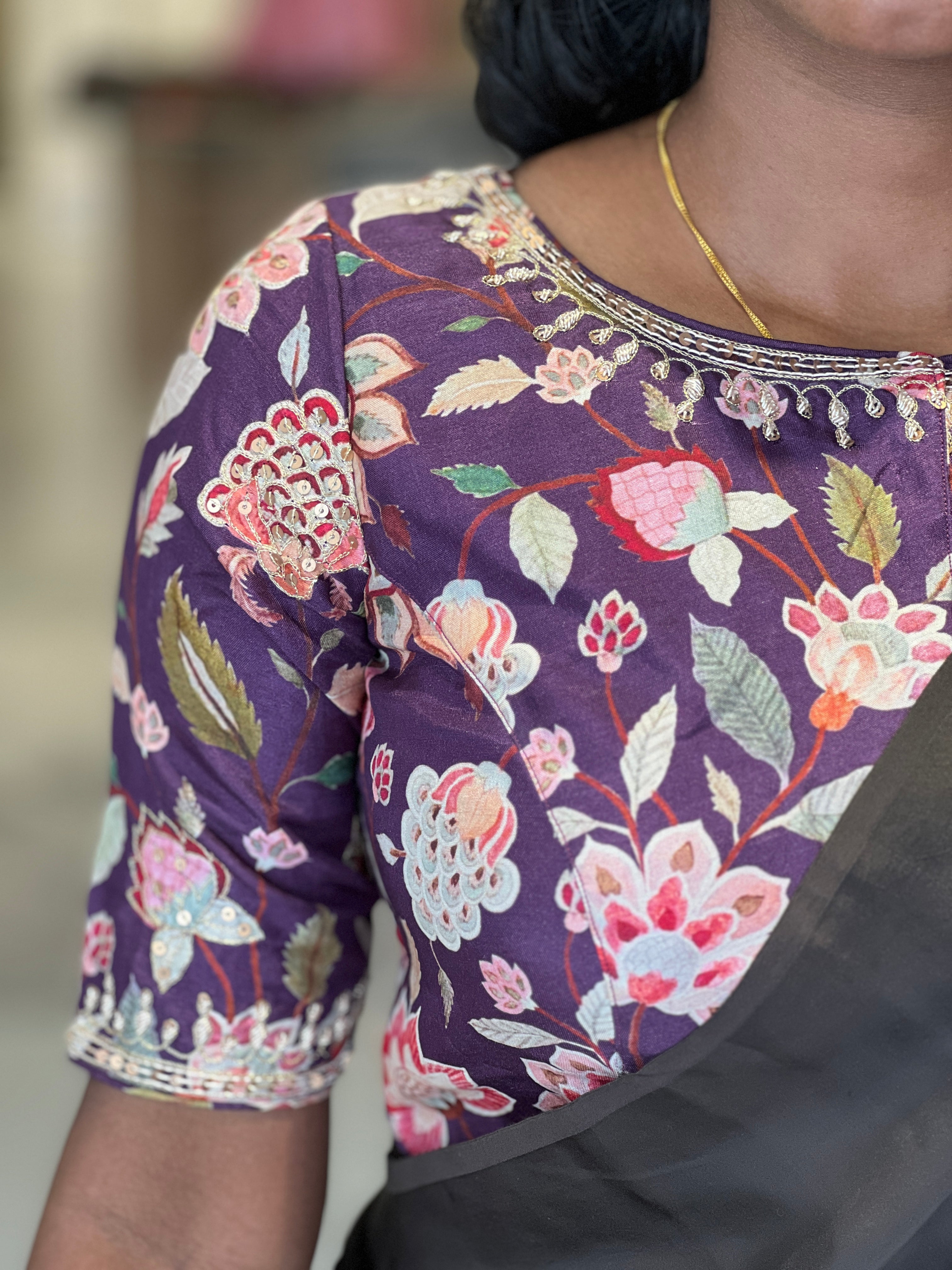 - Style: Princess Cut, Padded, Lining, Floral Digital Print With Hand Work Highlight, With Zari & Sequence Detailing