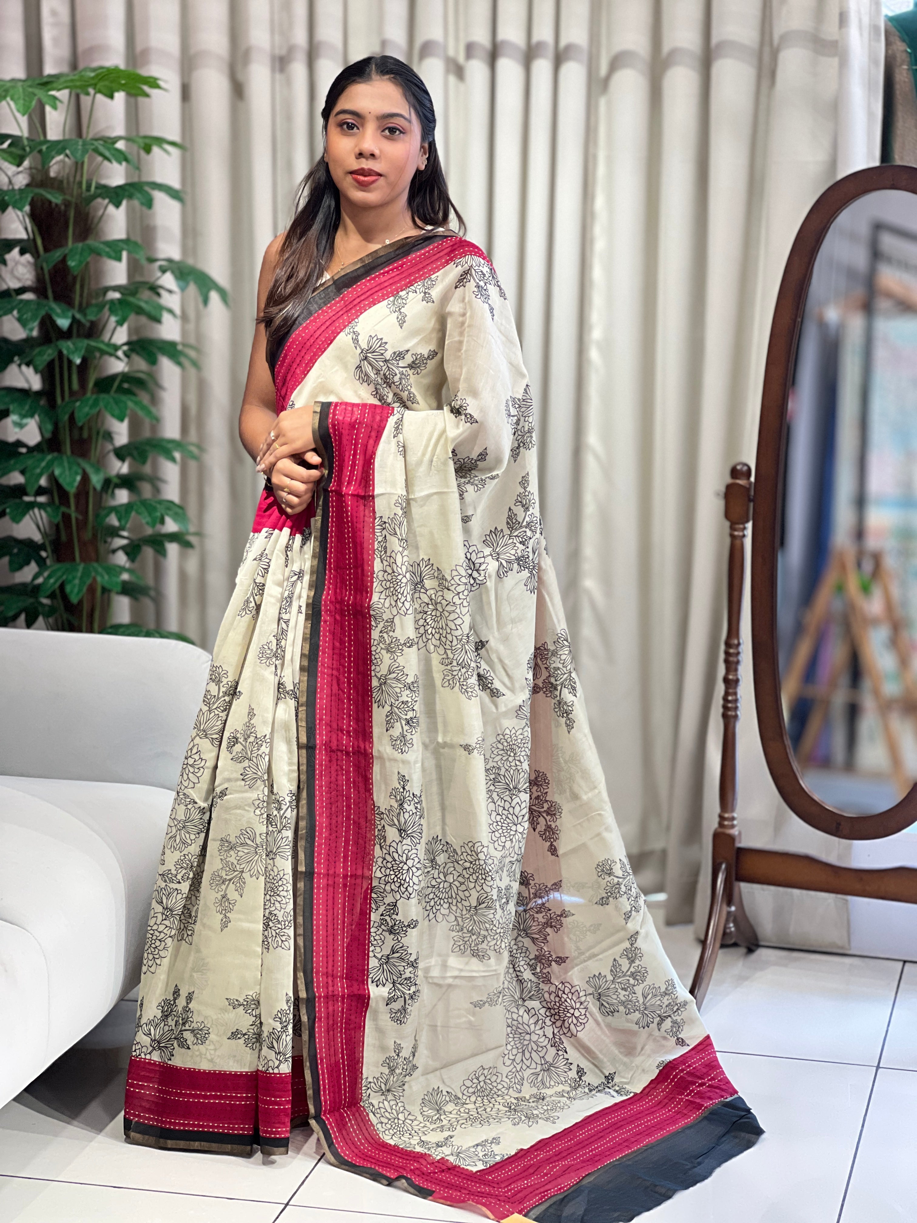 • Style: Printed, Contrast, Kantha Borders