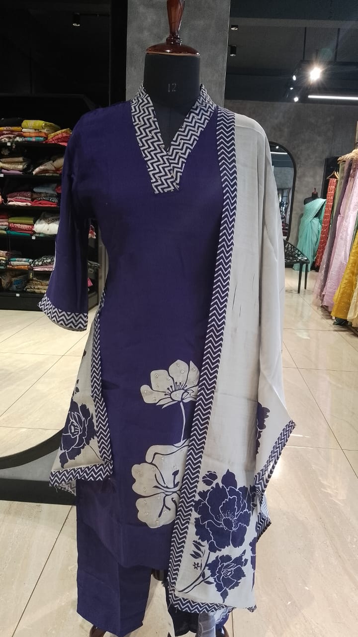 - Style: Floral Printed Placement Detailing, With Embroidery Highlighted, Side Slit Pattern, Zigzag Patterned Neck