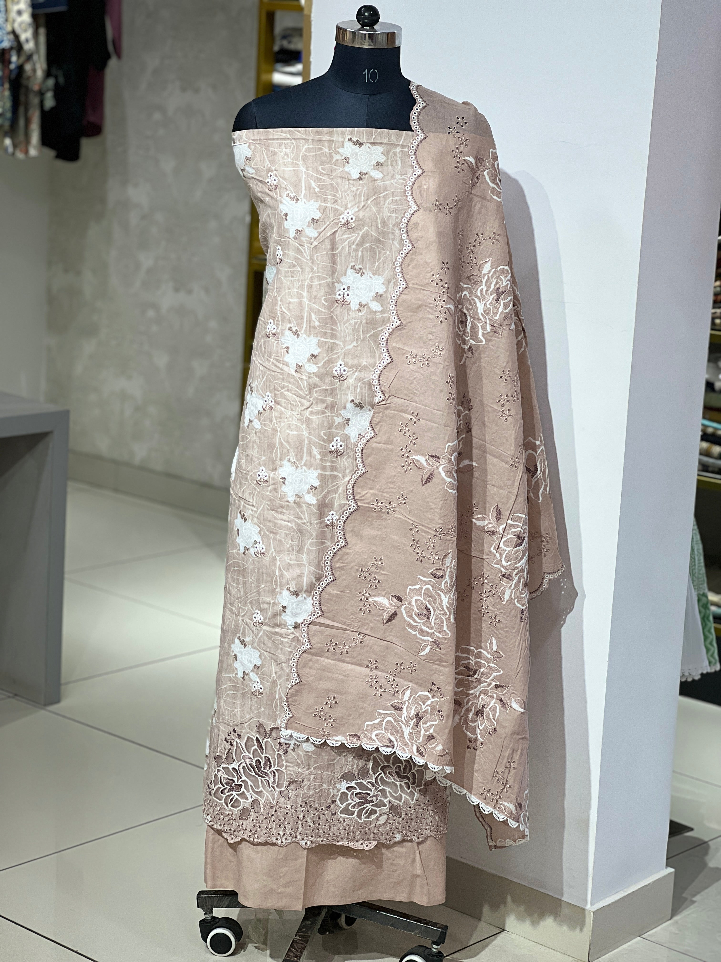 • Floral Printed Applique Patterned Cambric Cotton Salwar Set | GE103