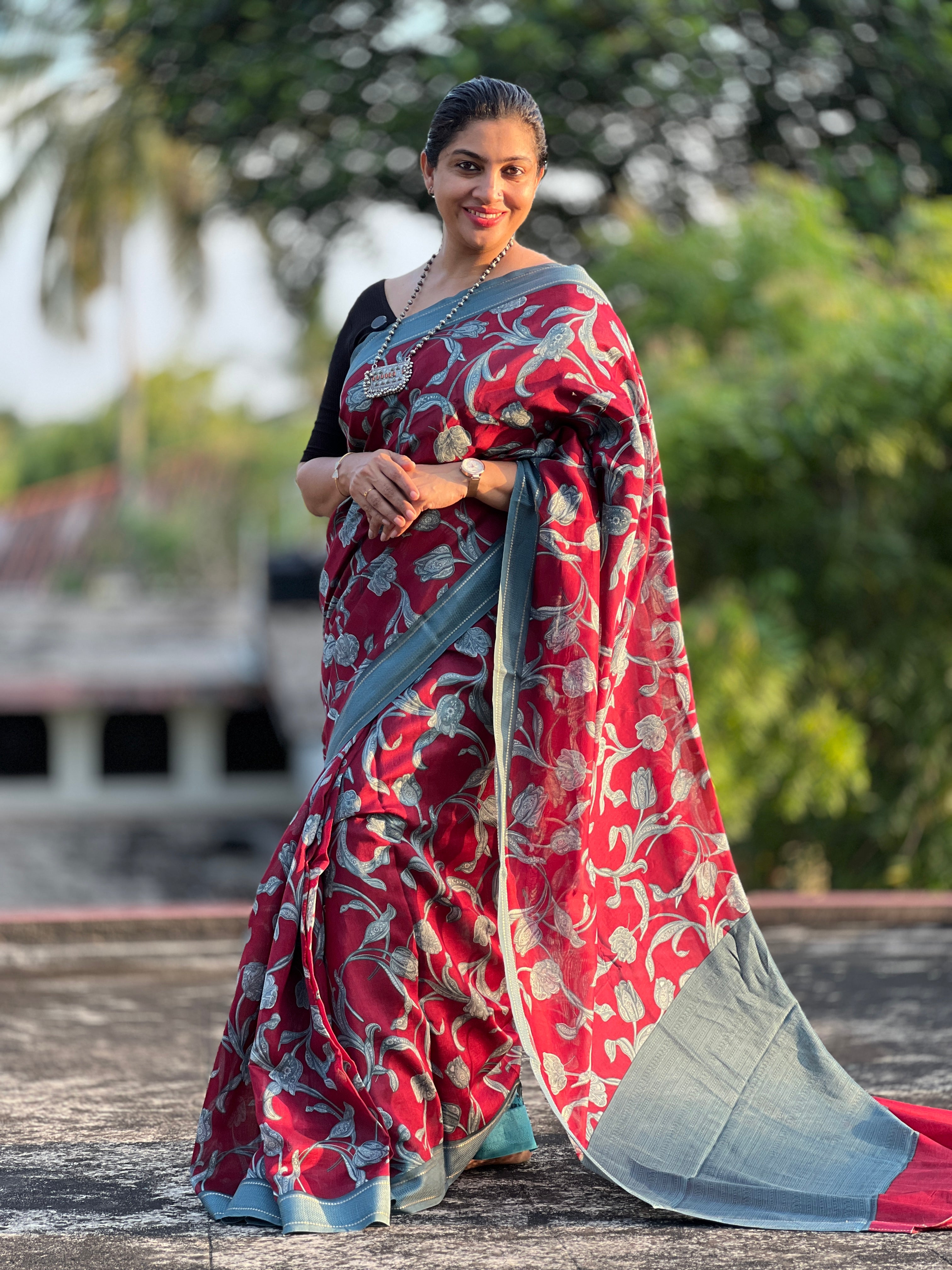 - Style: Floral Printed ,Thread Weaving Border Pattern,Madhubani Design