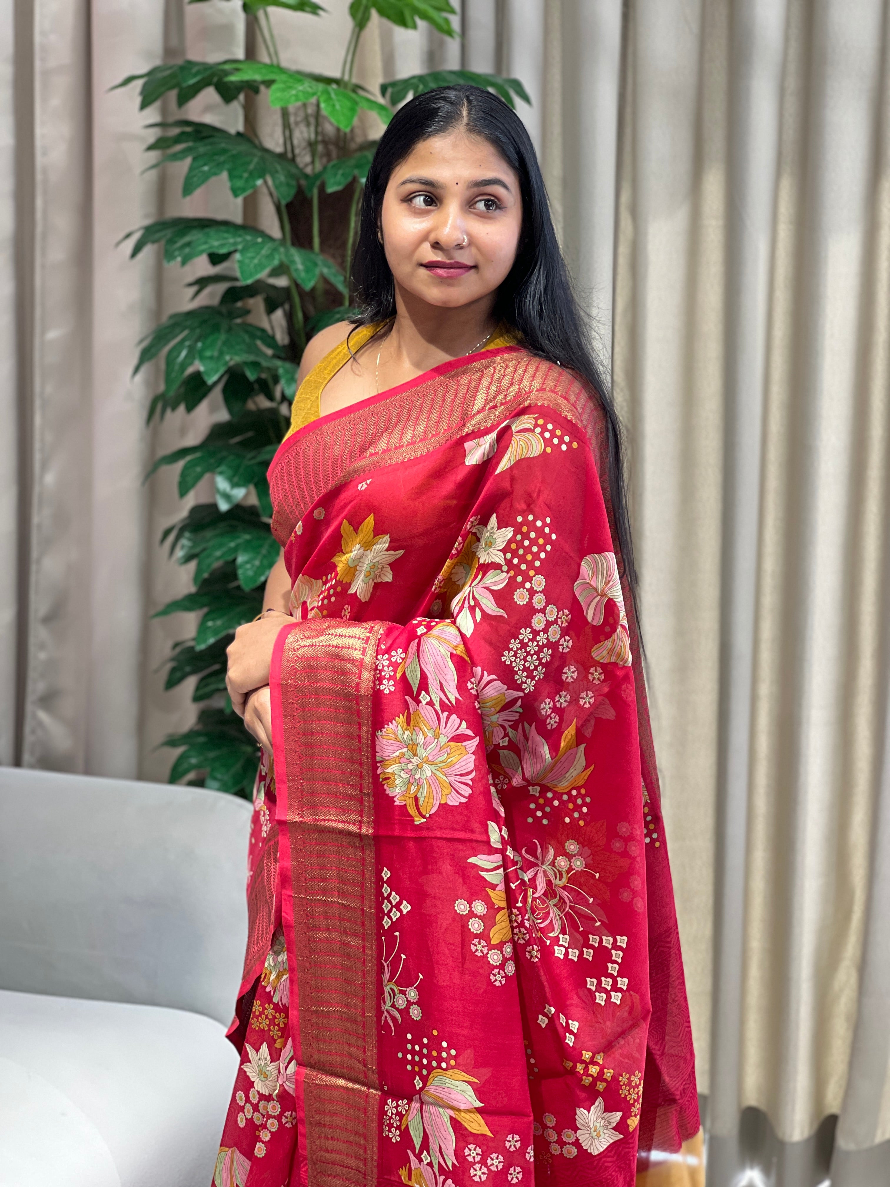Floral Printed Chanderi Saree | RGD970R Floral Printed Chanderi Saree | RGD970R