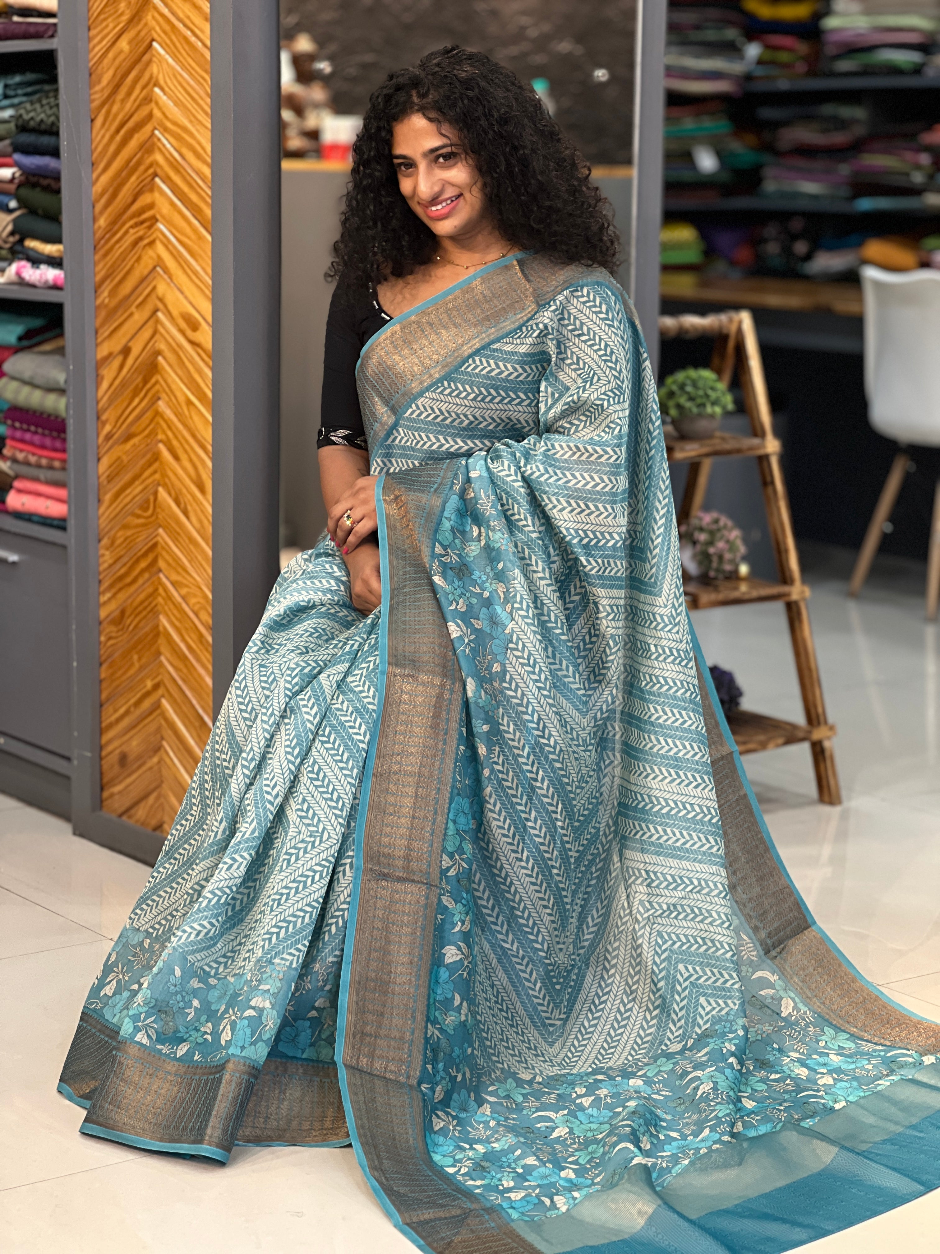 - Style: Geometrical and Floral Printed Design, Zari Border