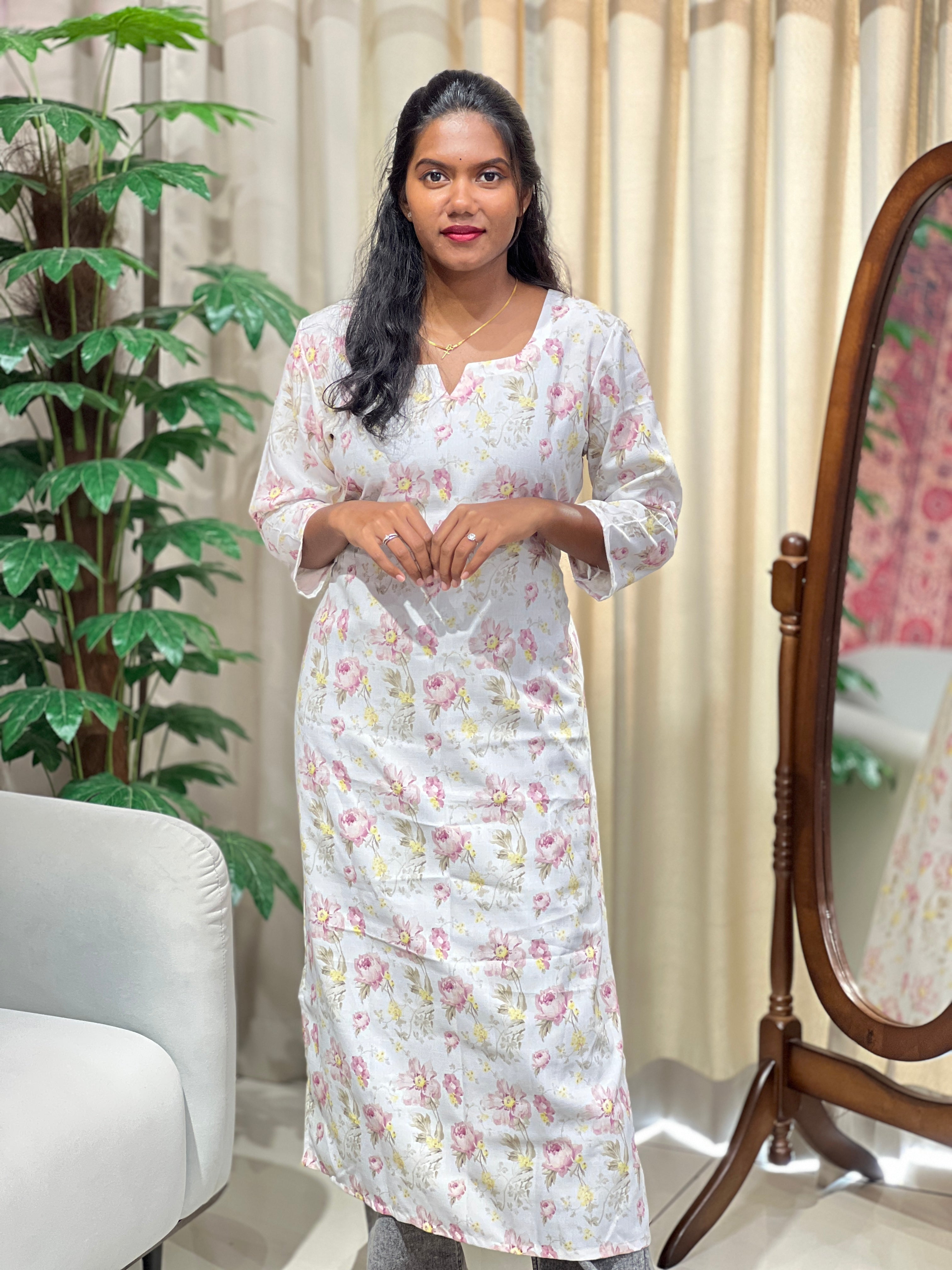 - Style: Floral Printed, Side Slit, Without Lining