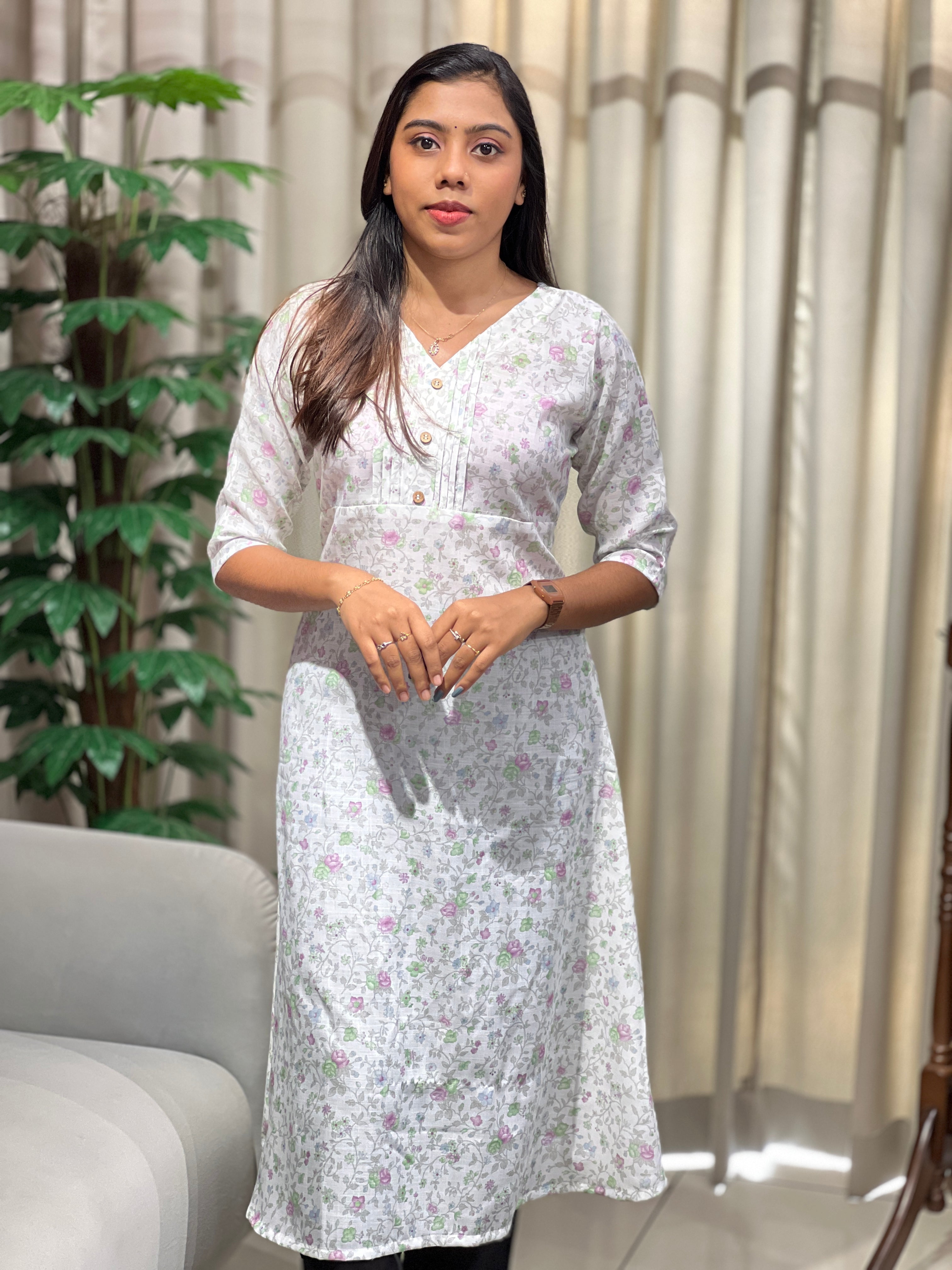 - Style: Floral Printed, Button Detailing, Pleated Detailing On Yoke