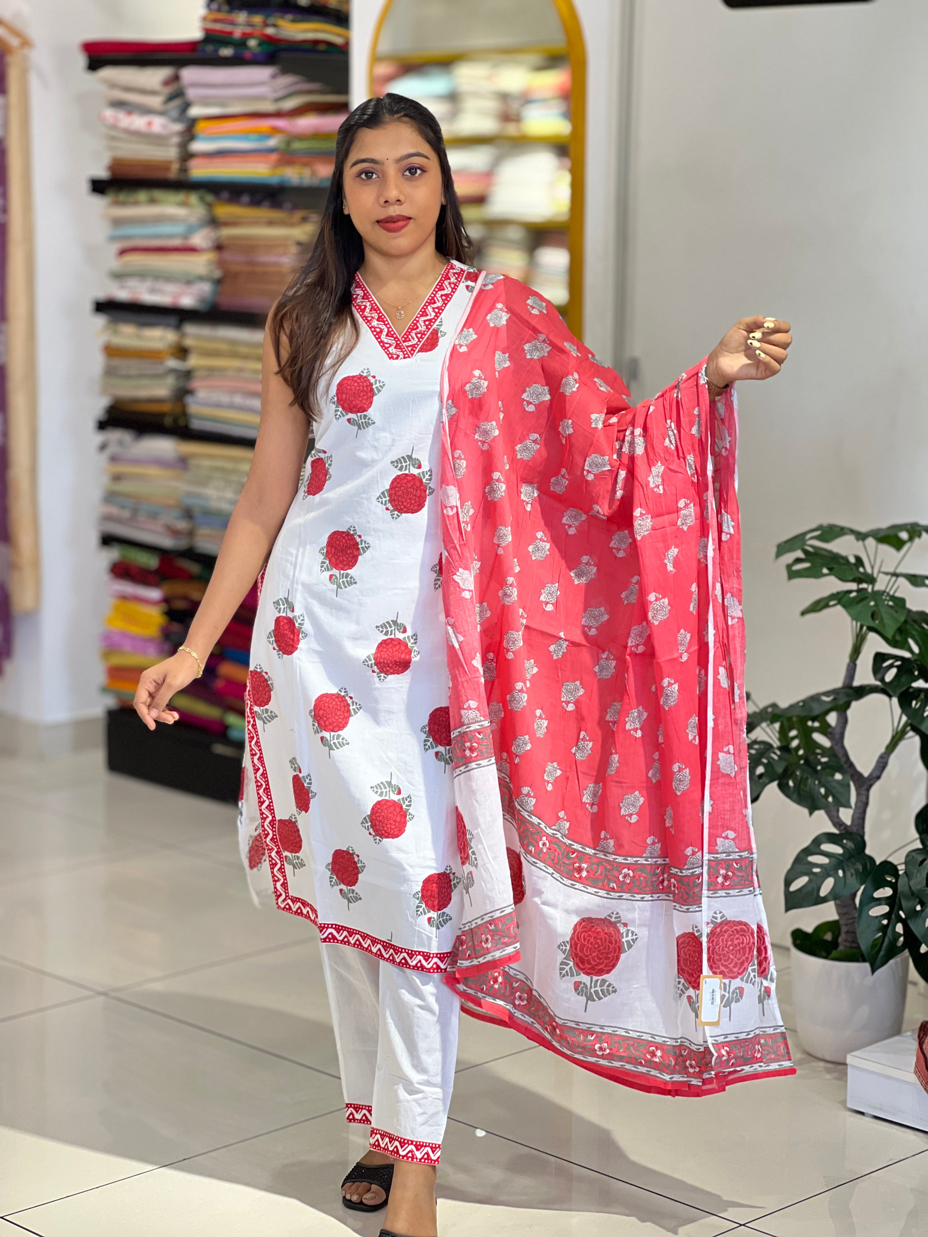 - Style: Floral Printed, Kantha And Sequence Detailing on Neck, Slitted Pattern, Without Lining