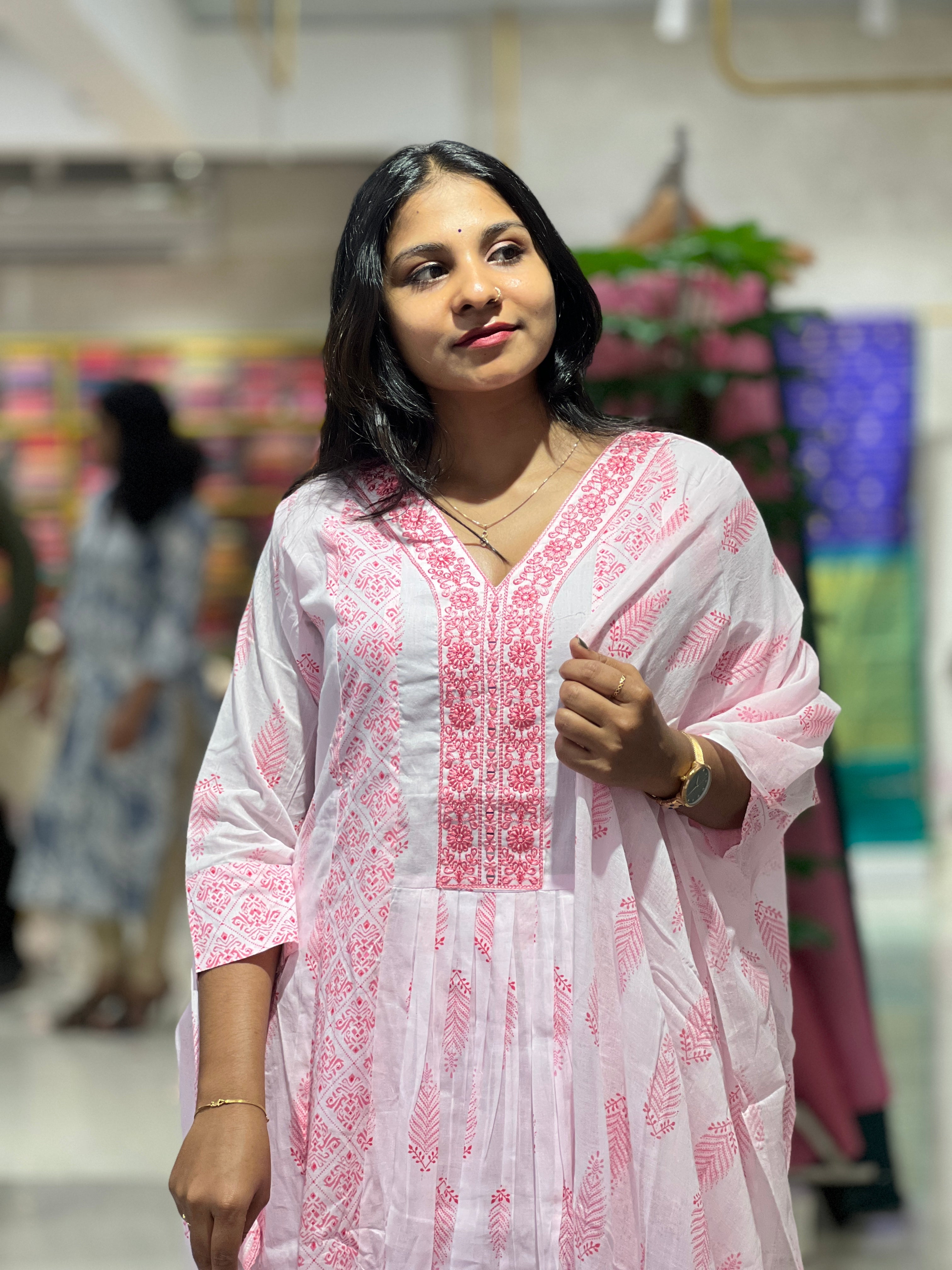 - Style: Floral Printed Pattern With Embroidery Detailed Neck