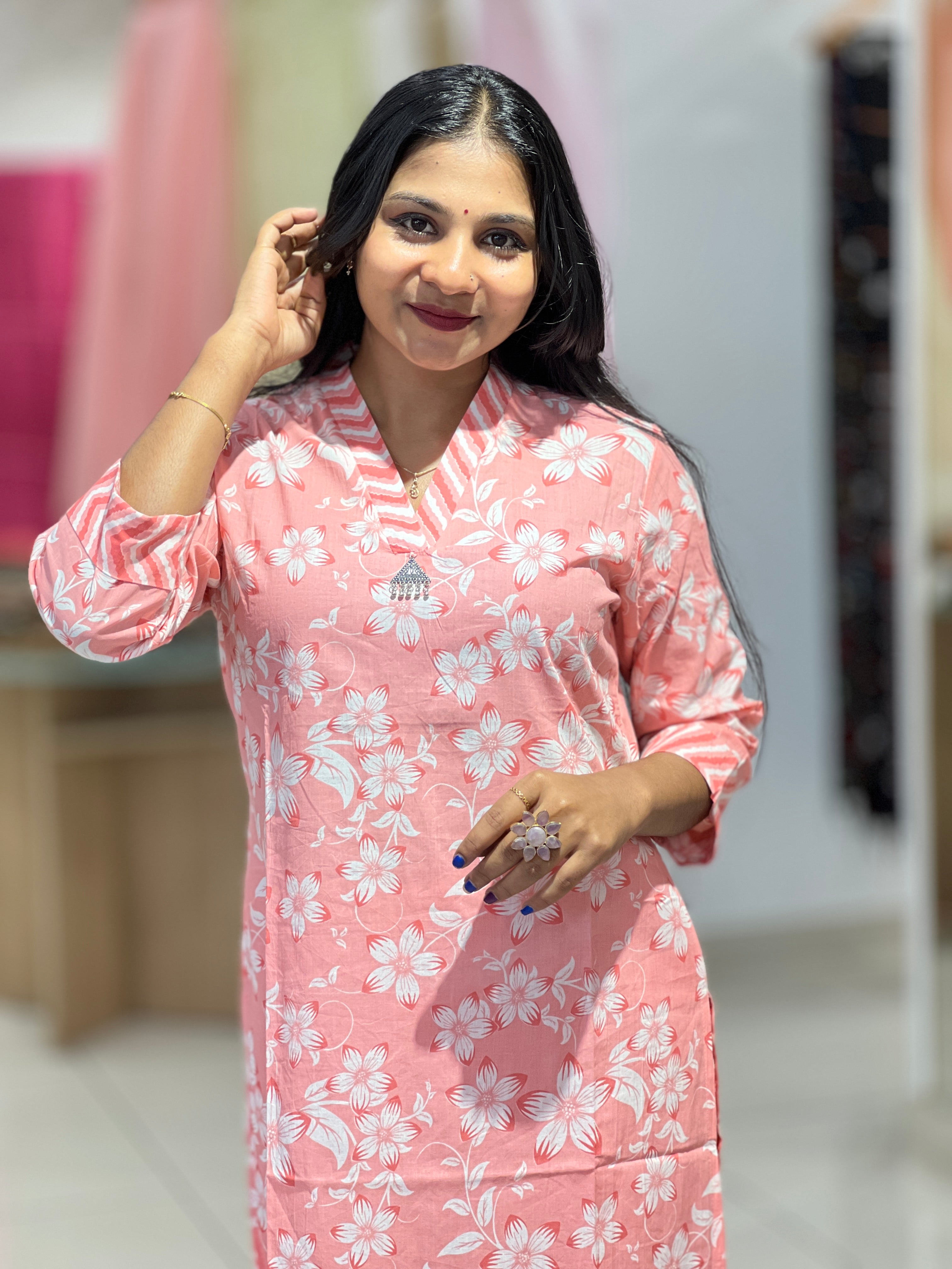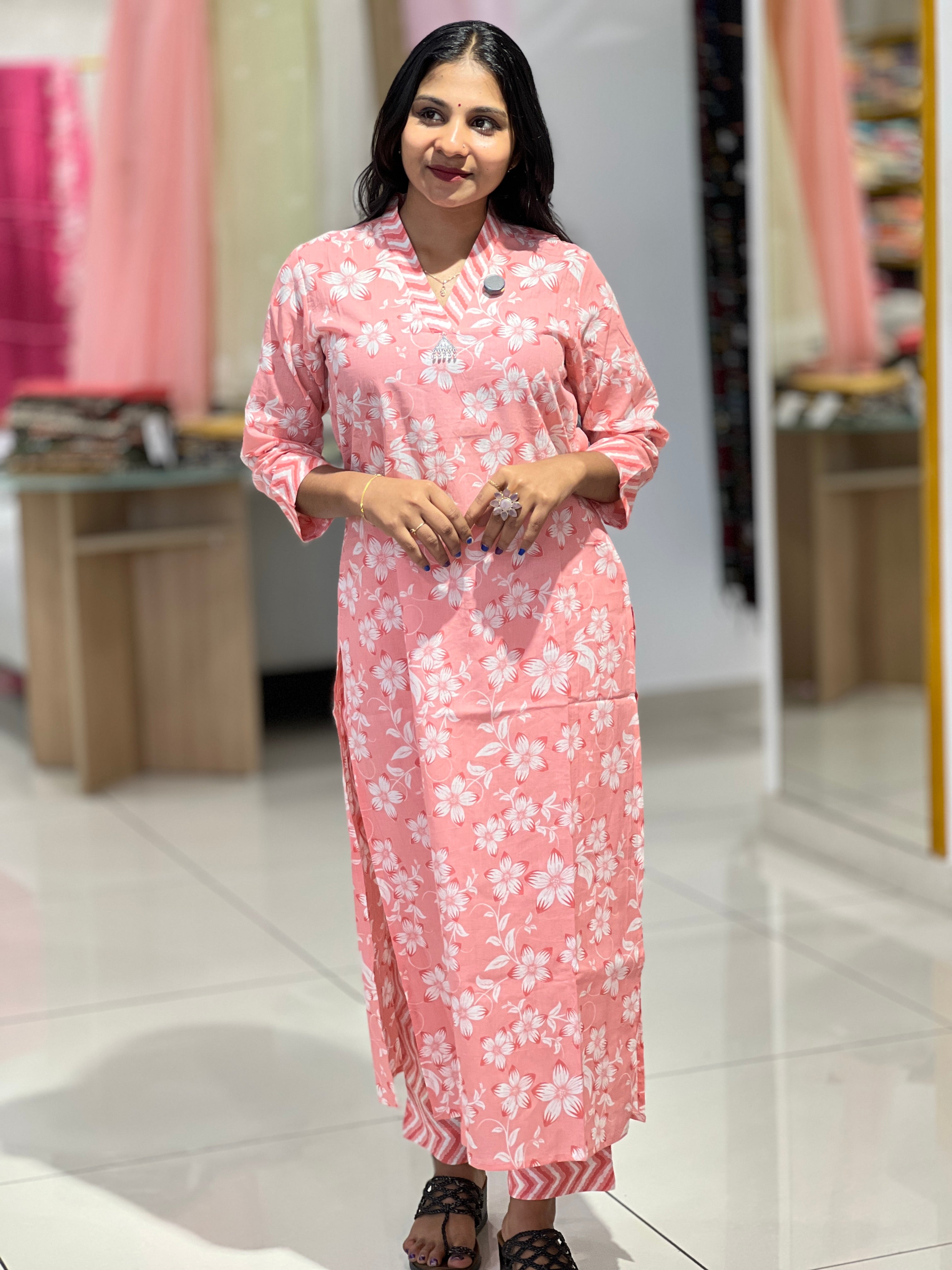- Style: Floral Printed Pattern, Side Slit Pattern