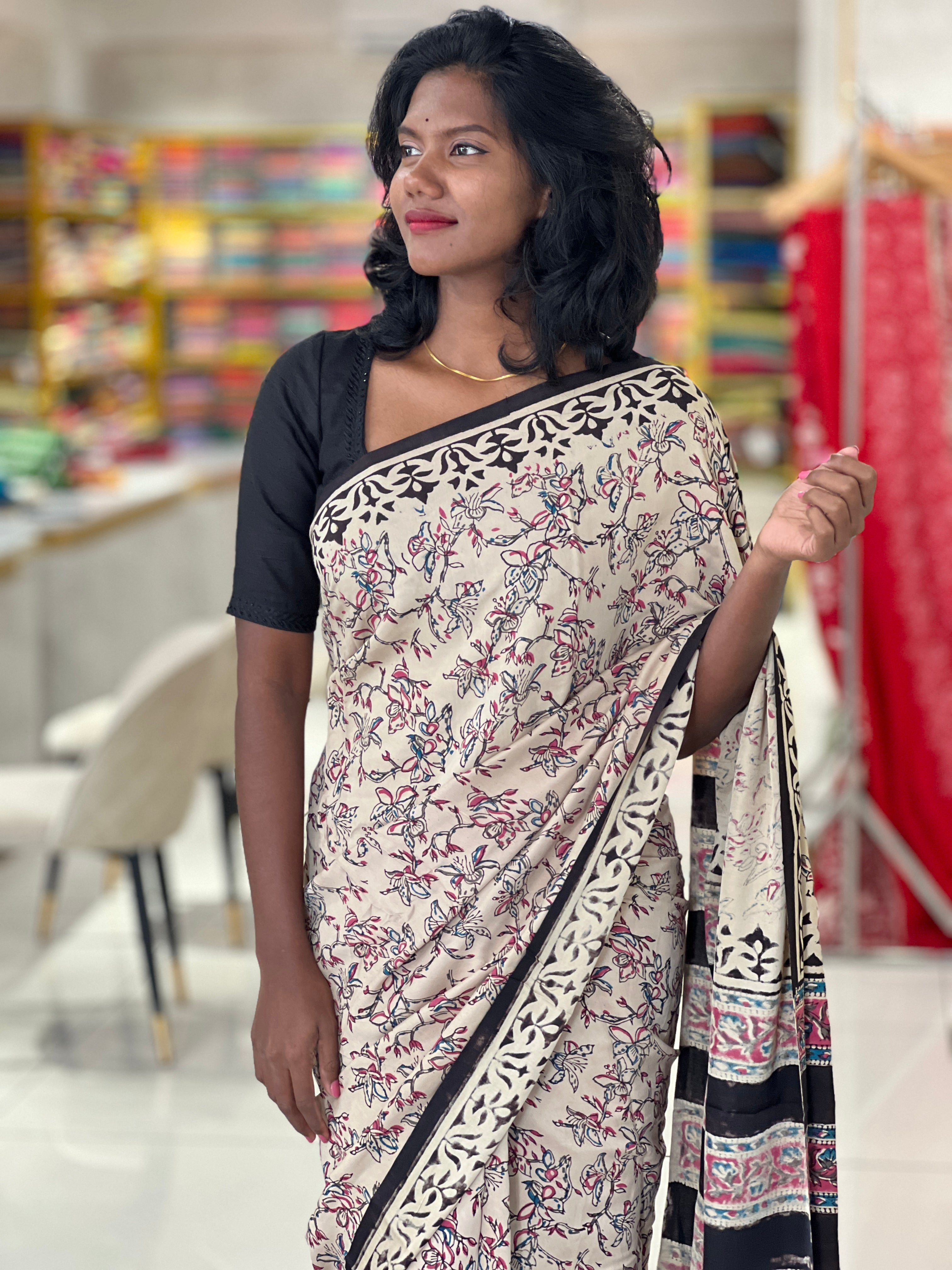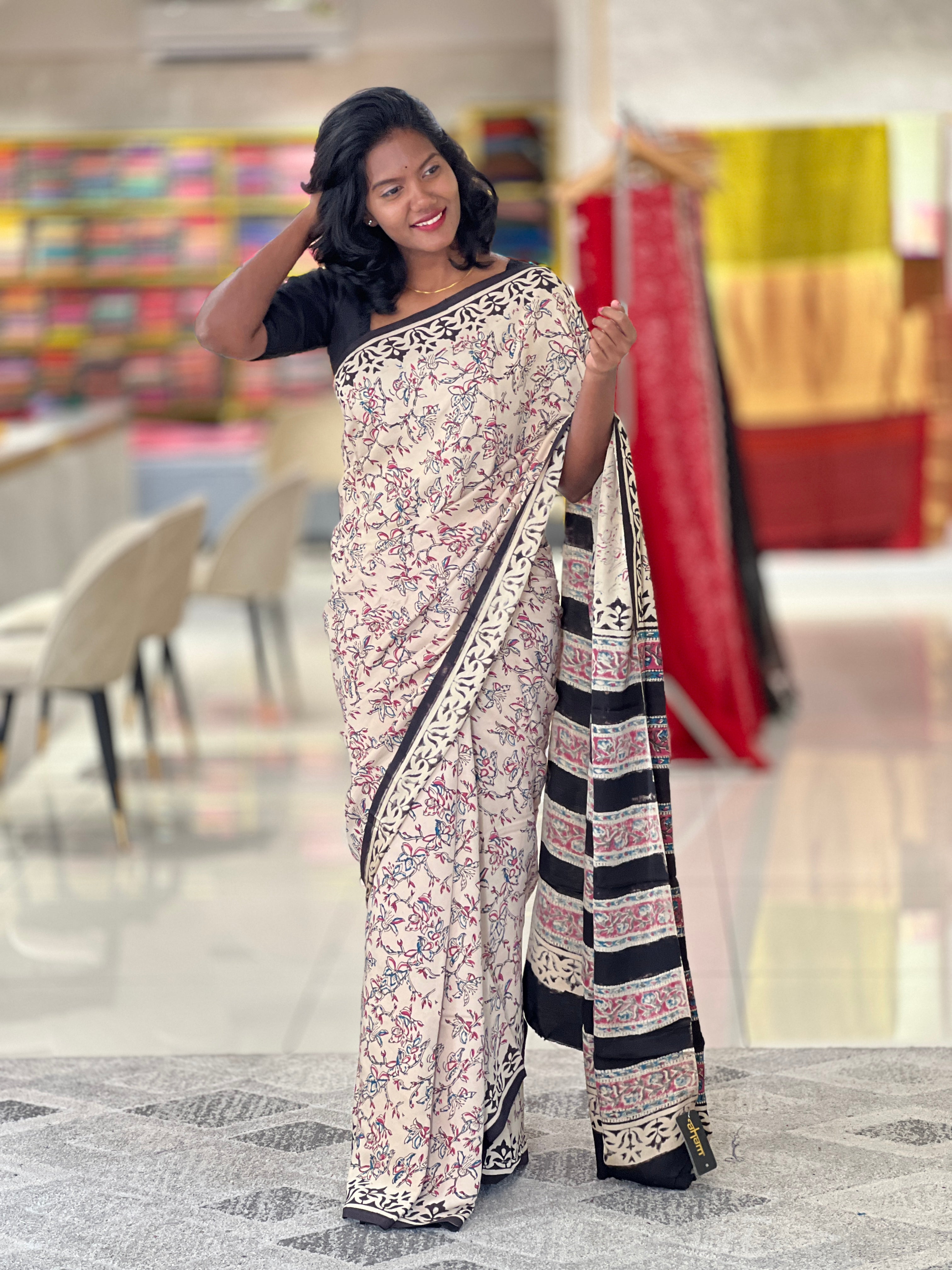 - Style: Printed, Floral Pattern, Geometric Patterned Borders, Stripe Patterned Pallu