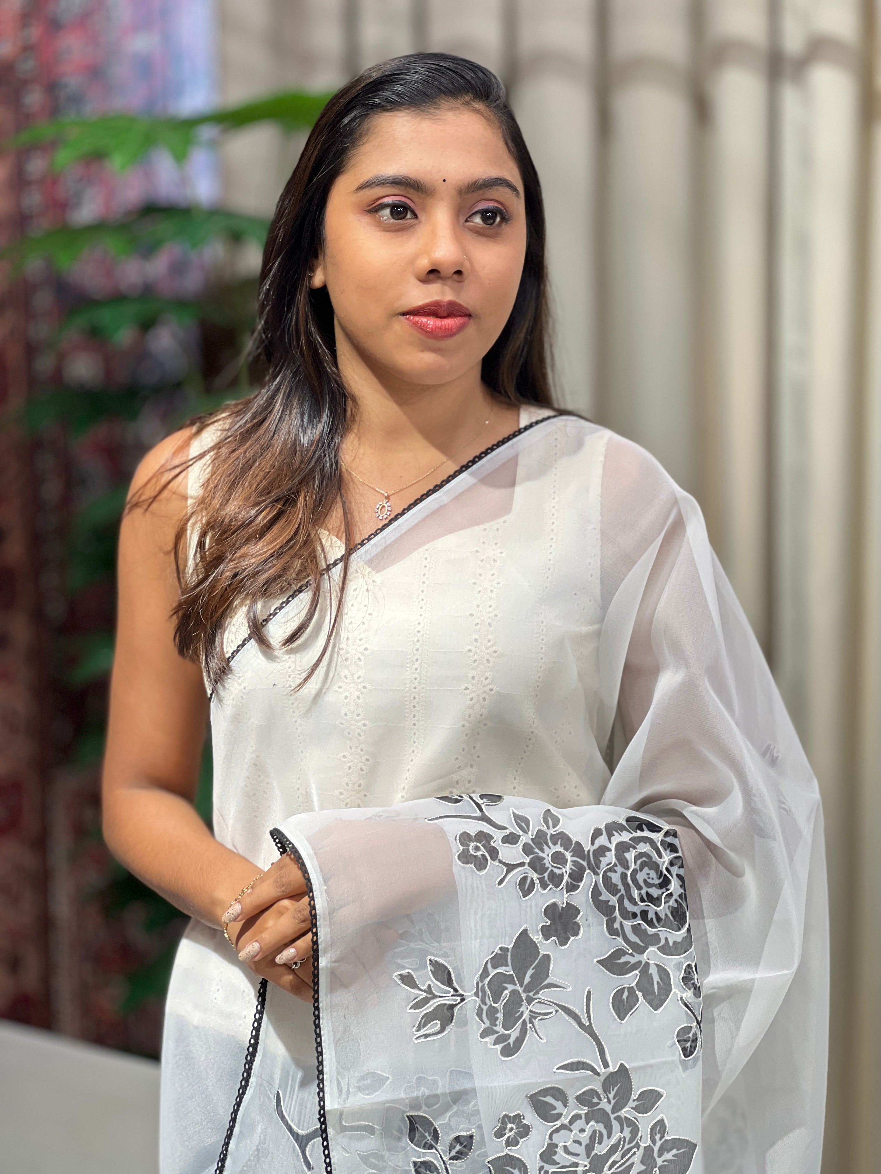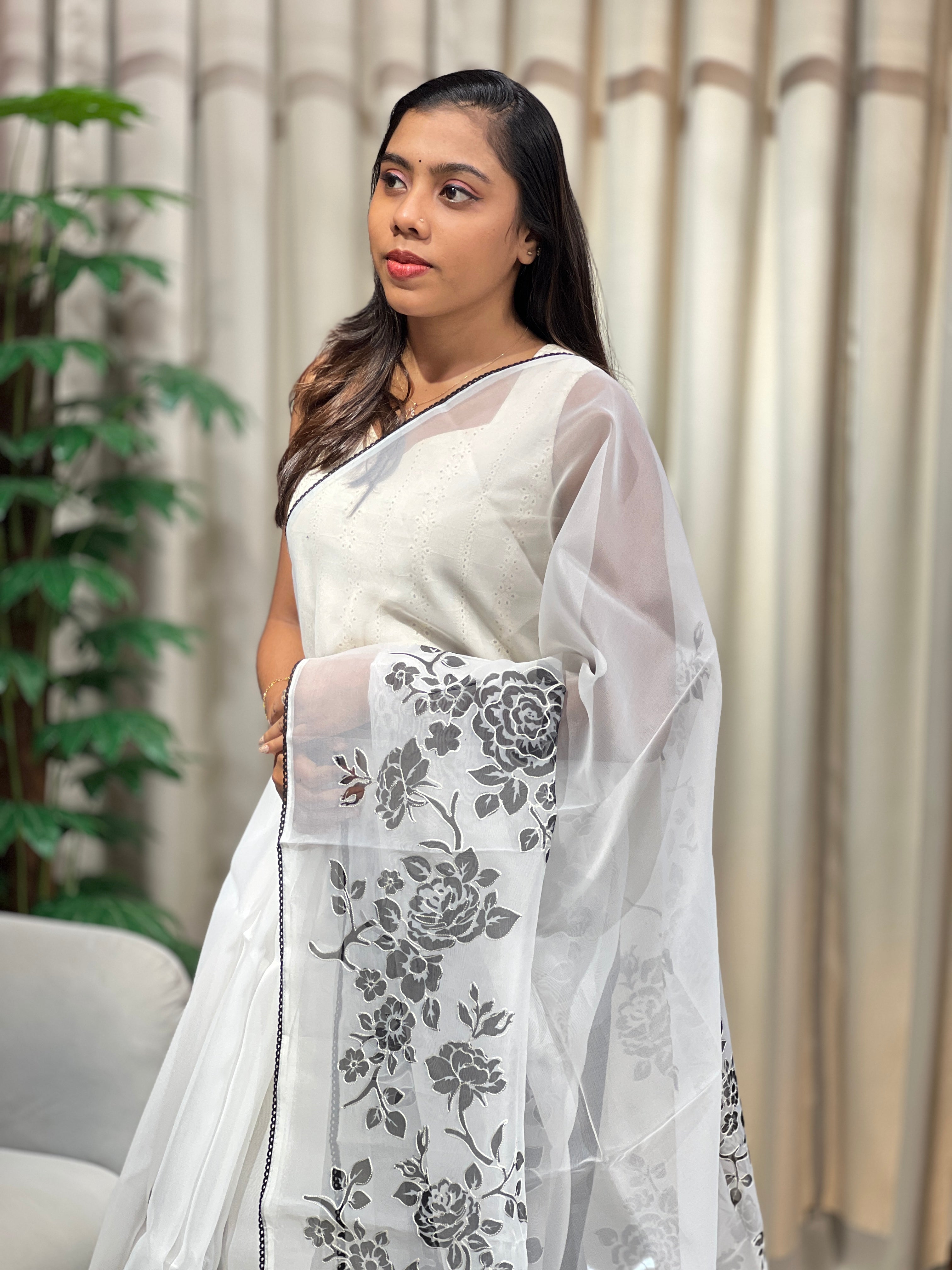 - Style: Floral Print Highlight With Thread Weaving, Lace Detailing On Border