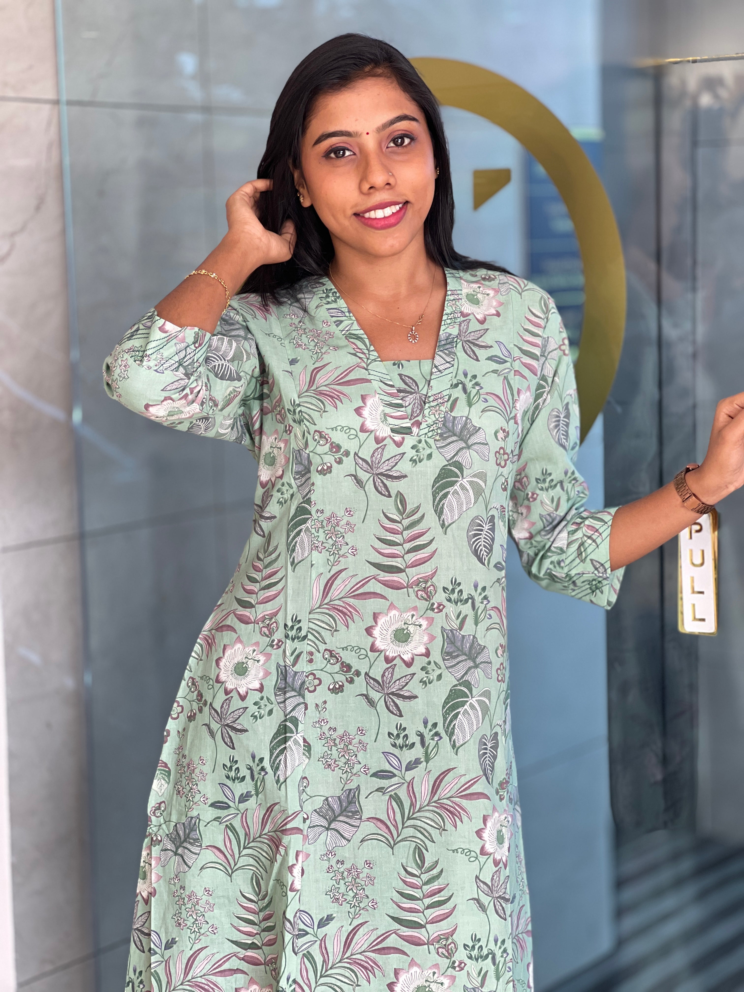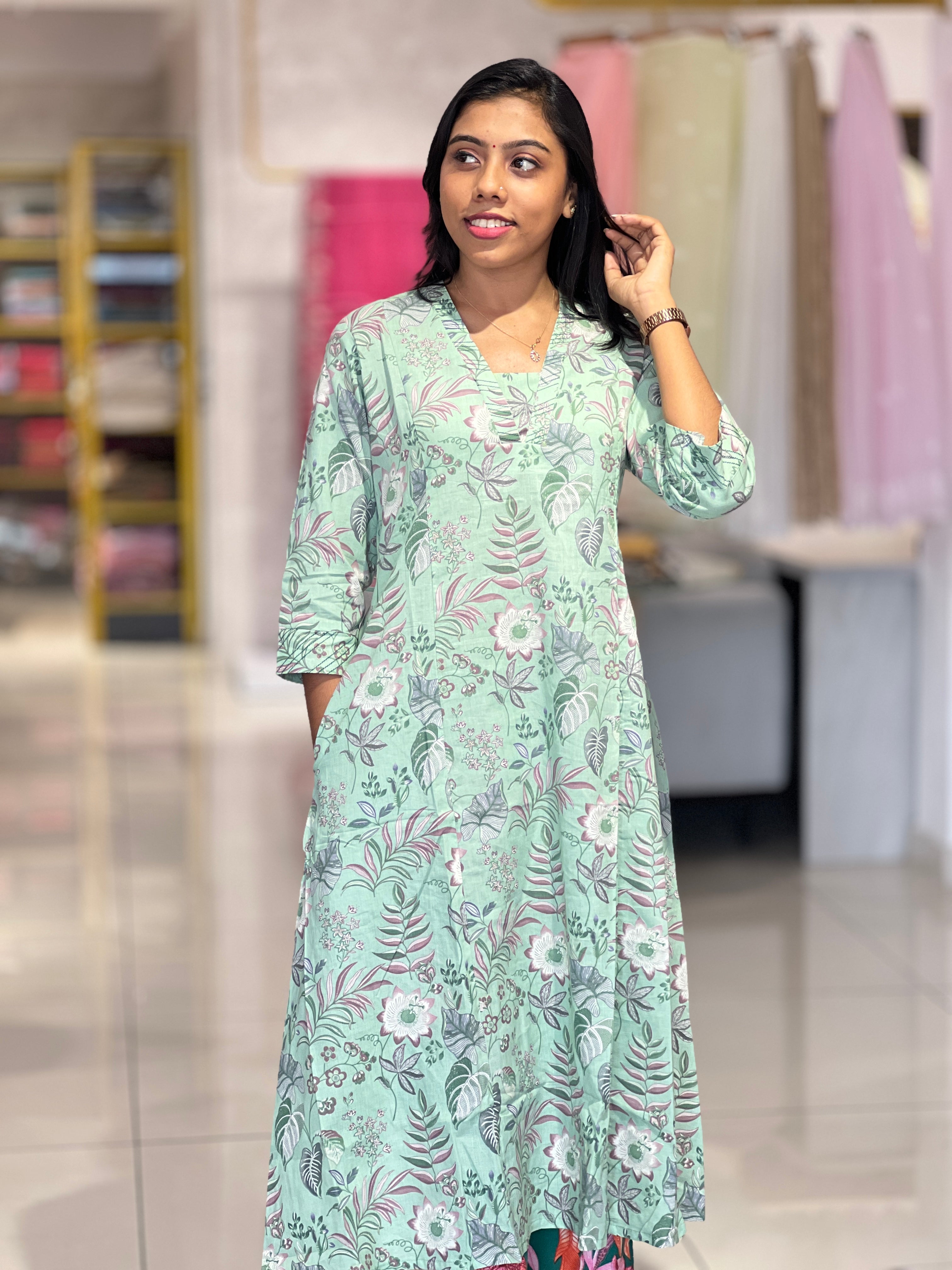 - Style: Floral Printed Pattern, Aline Model Top, Pocket Detailing, With Out Linning