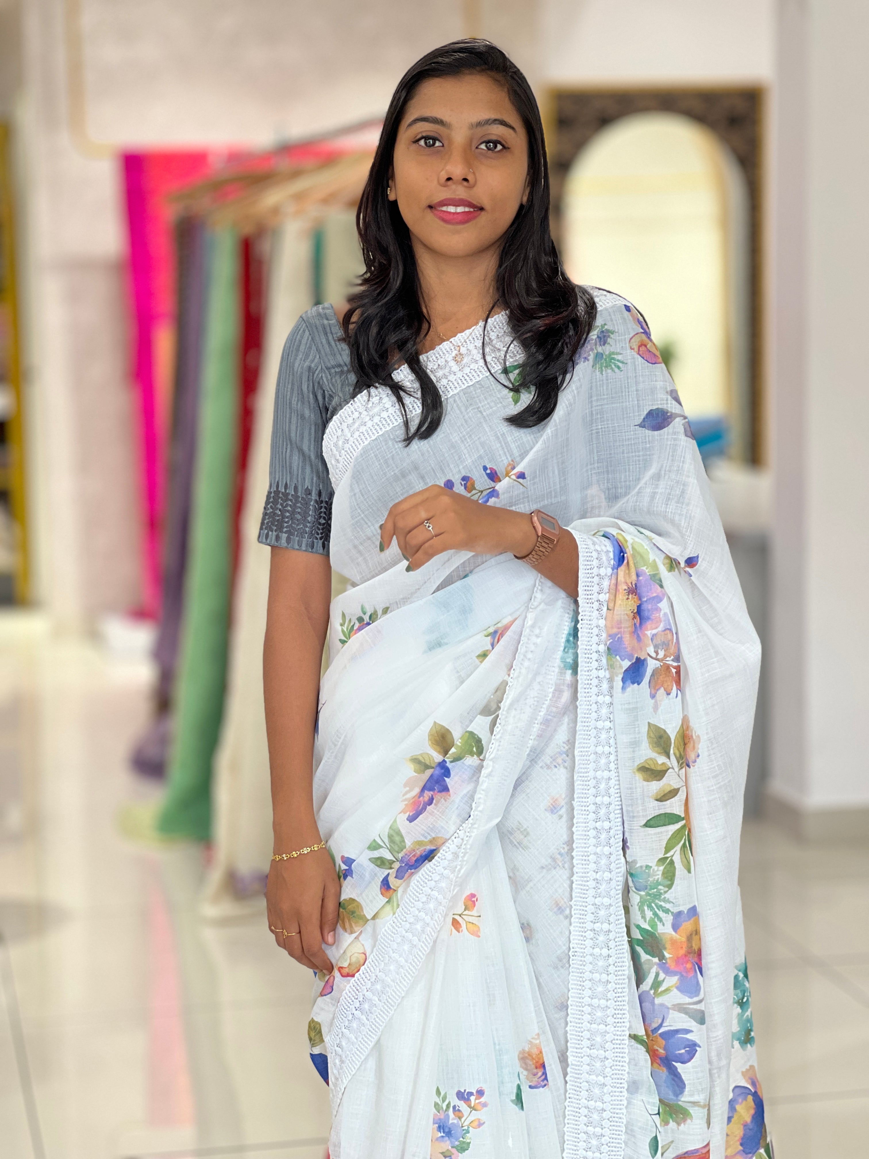 • Floral Printed Pattern Linen Finish Saree | RP685