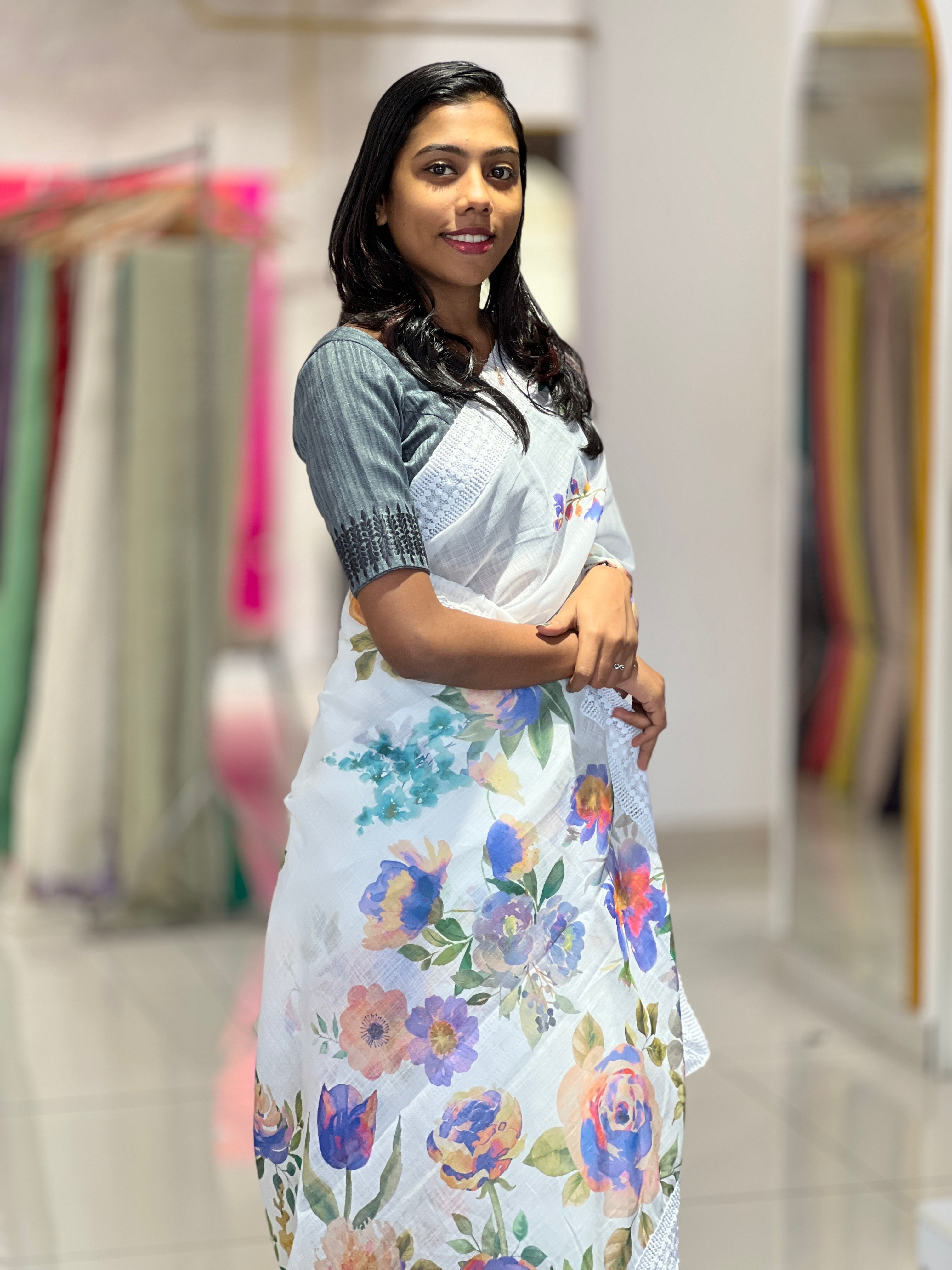 Floral Printed Pattern Linen Finish Saree | RP685 Floral Printed Pattern Linen Finish Saree | RP685