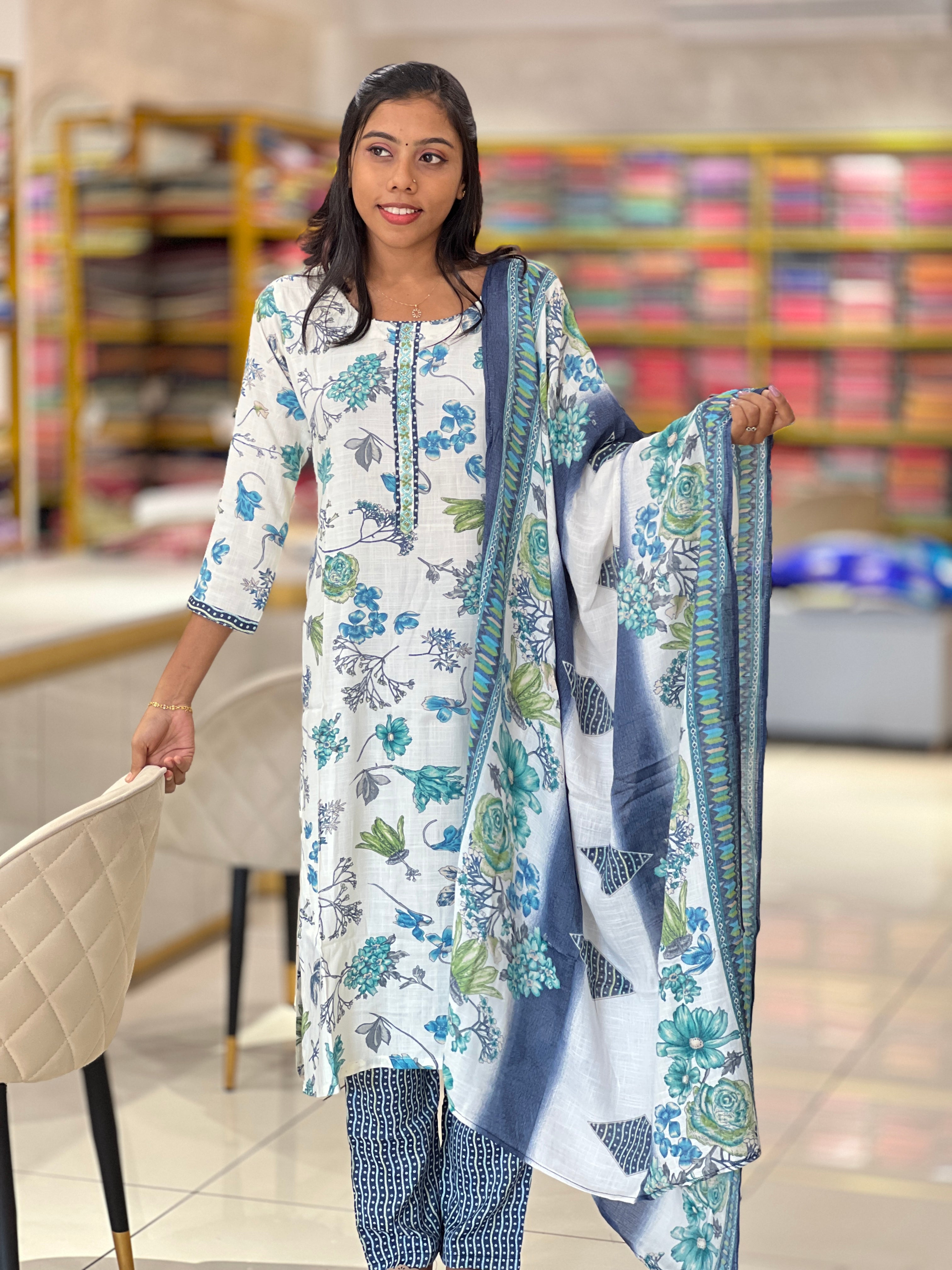 - Style: Floral Printed With Padi Detailing, Sequence Highlighted, Piping Detailing Neck, Side Slitted