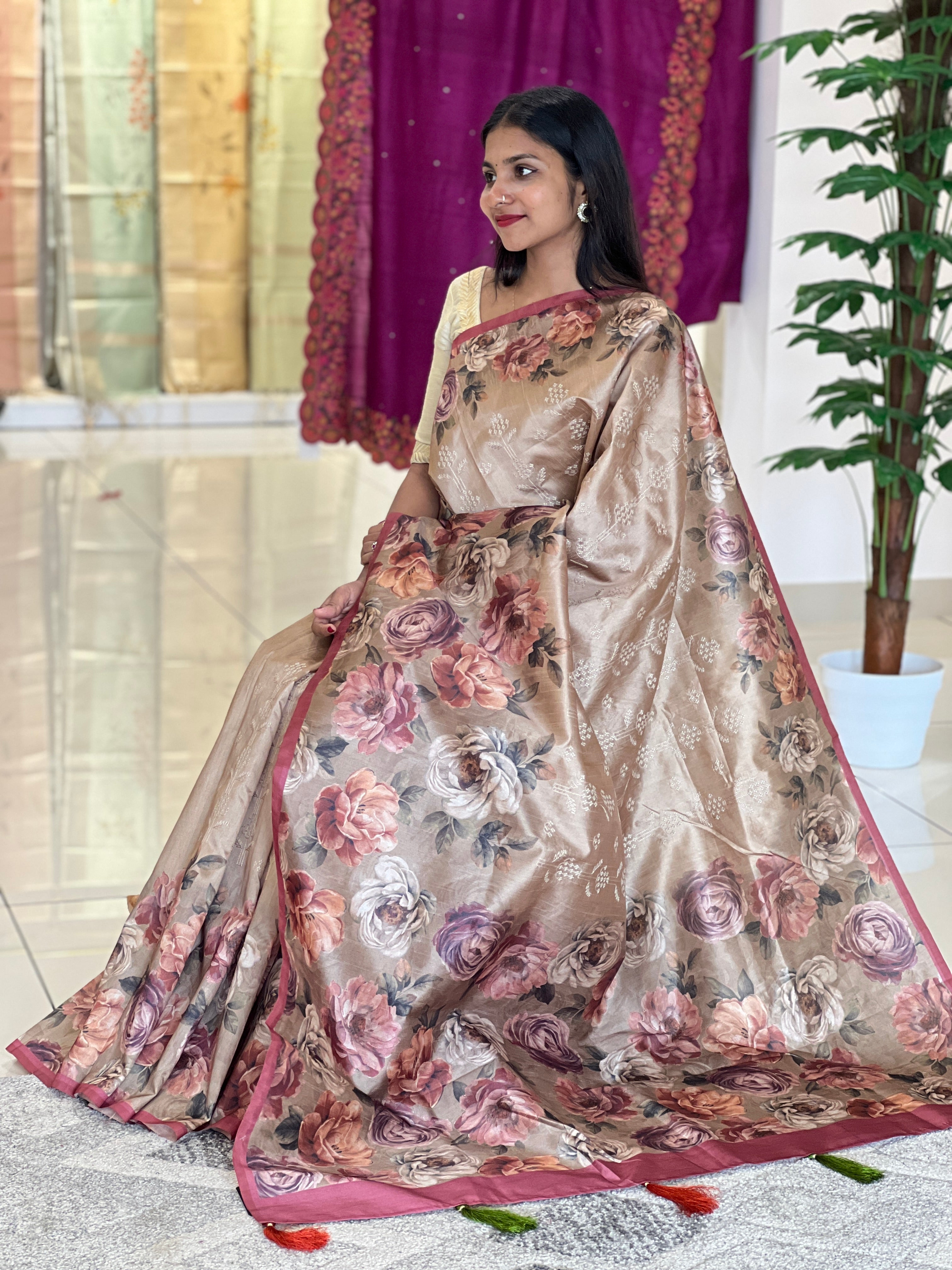 - Style:Floral Printed ,Self Color Embroidered Design