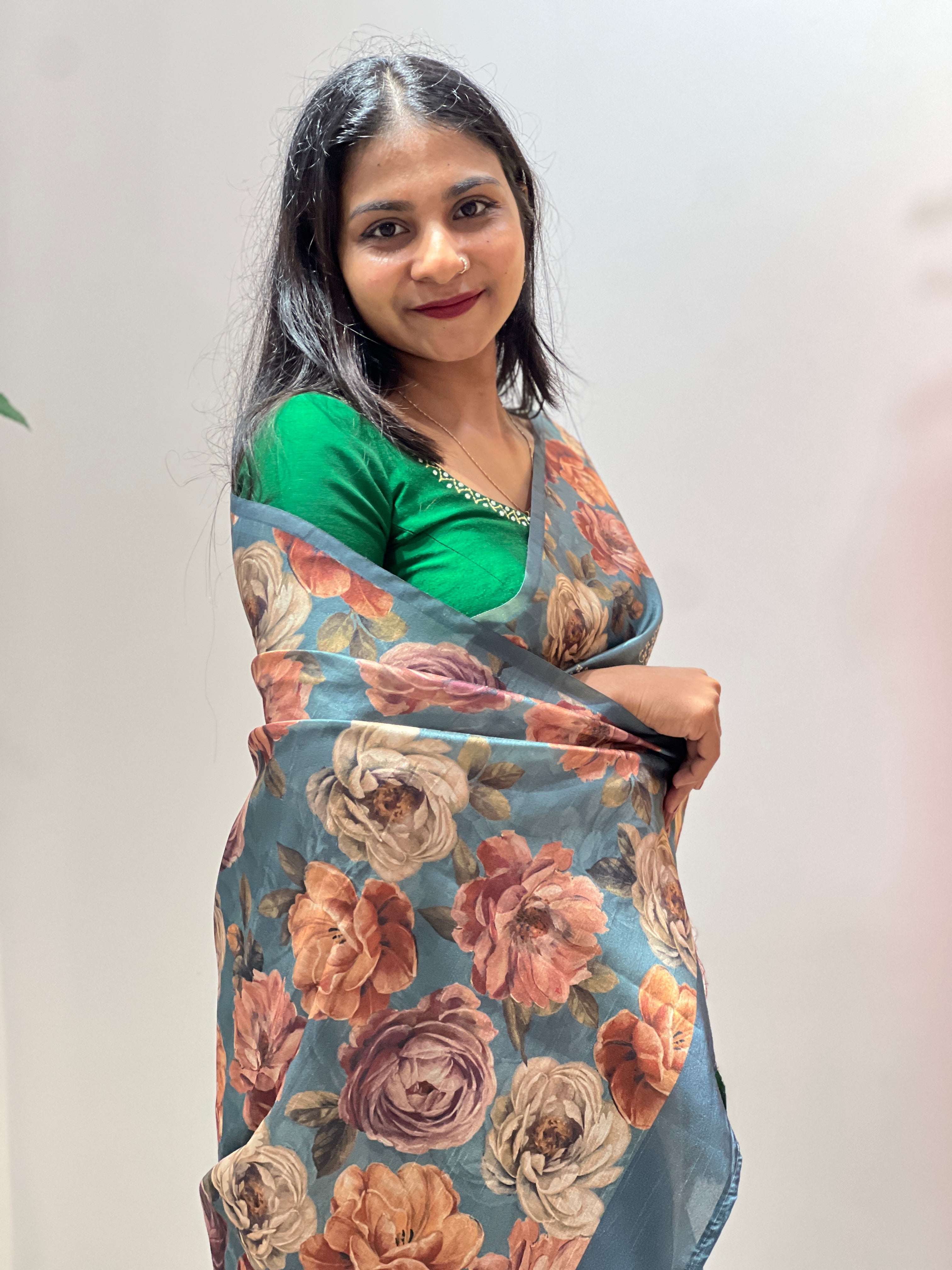 - Style:Floral Printed ,Self Color Embroidered Design