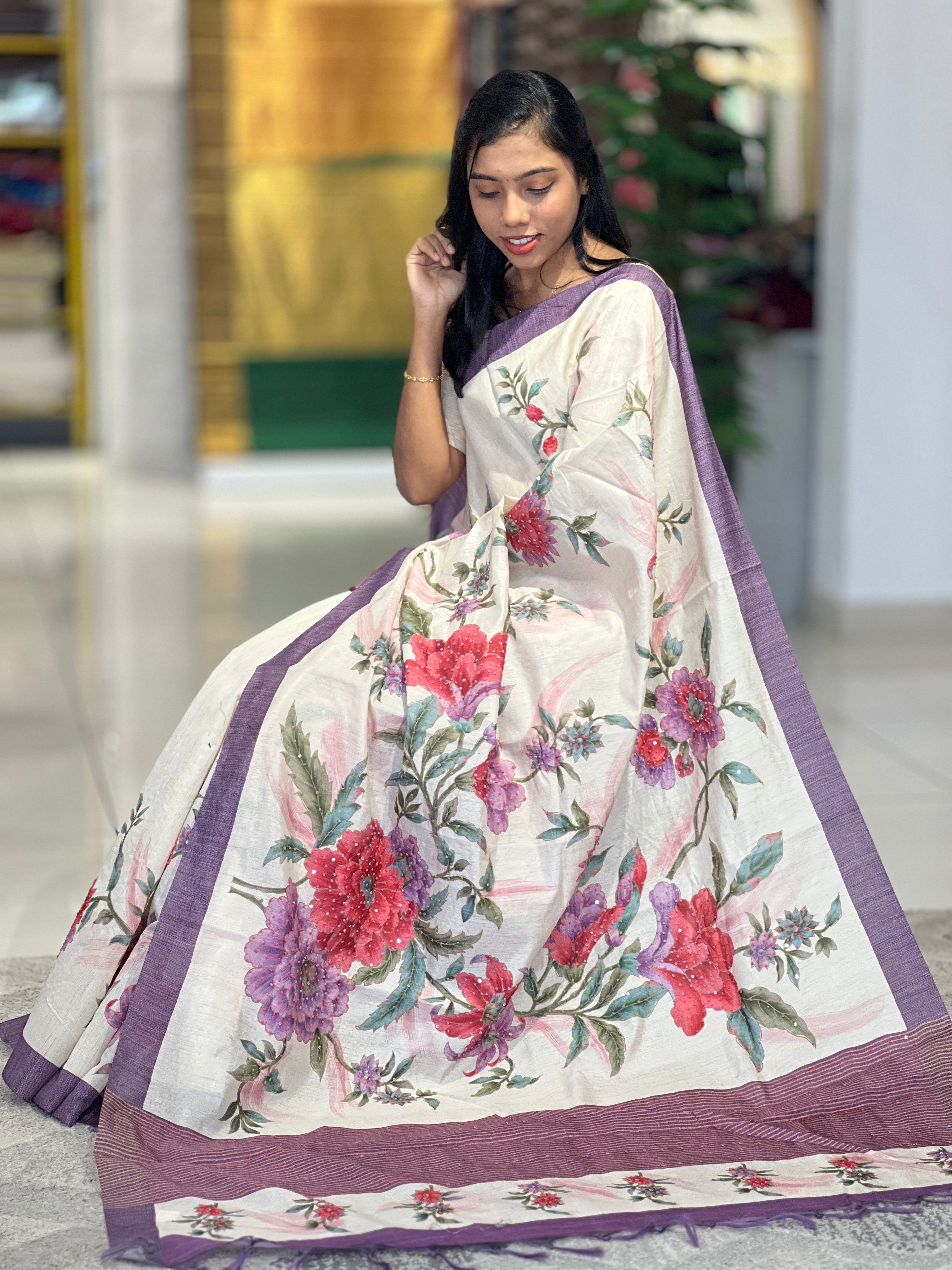 - Style: Floral Printed Design,Embroidery Highlighted,Pallu Stripe