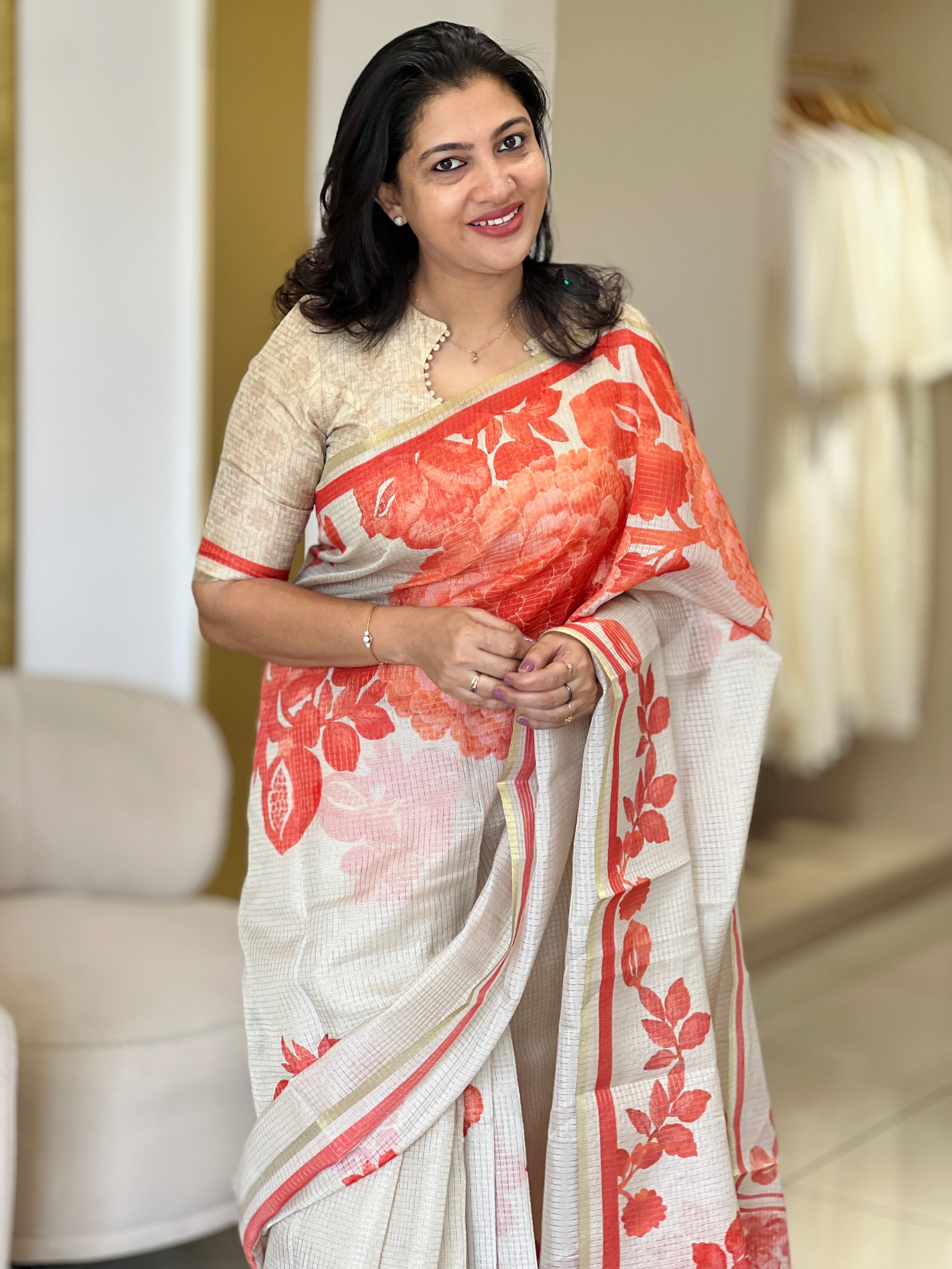 - Style: Tissue Weaved, Floral Printed Pattern, Zari Checked Pattern