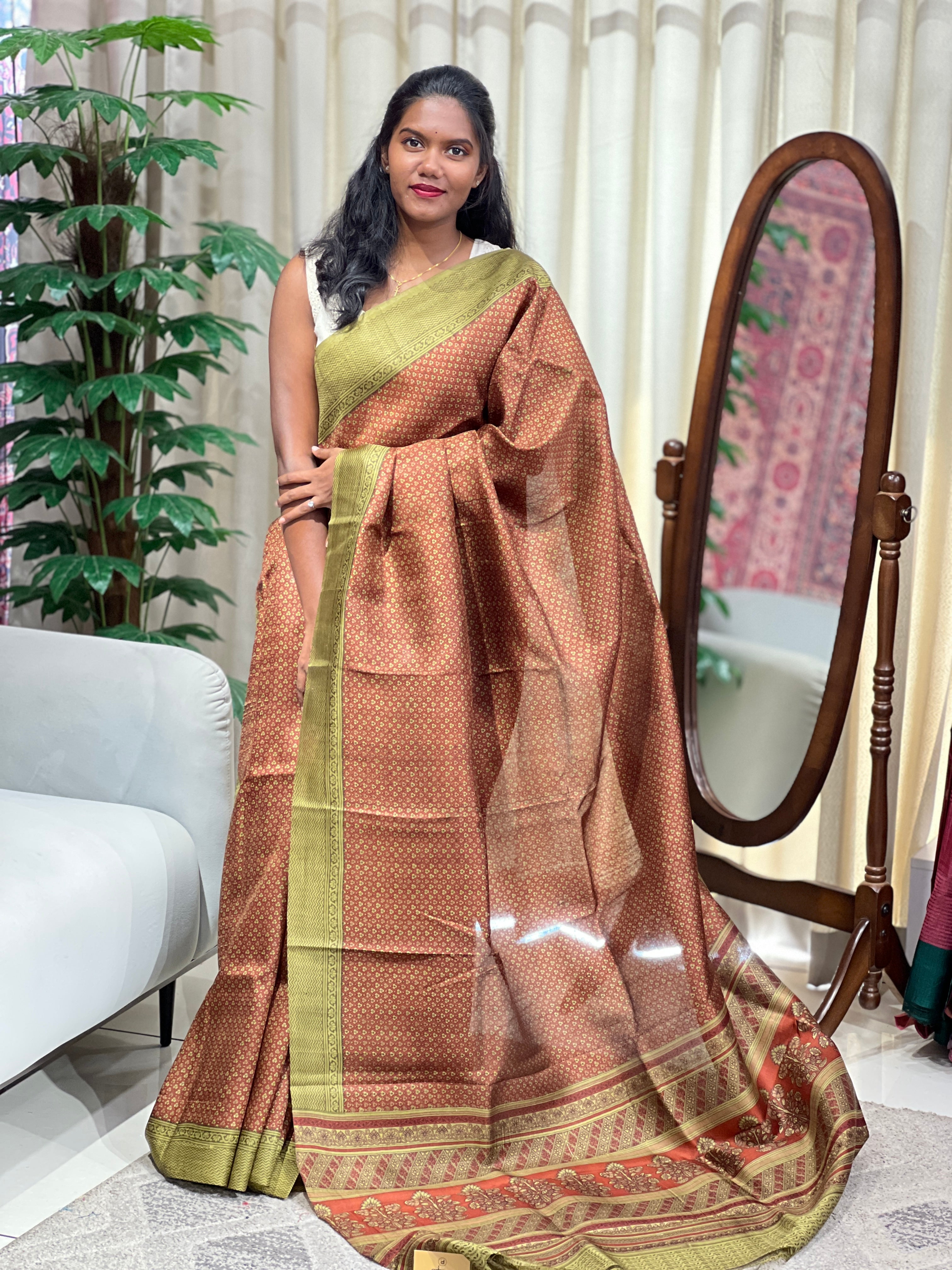 • Style: Floral Printed, Floral Pallu Detailing, Border Detailing