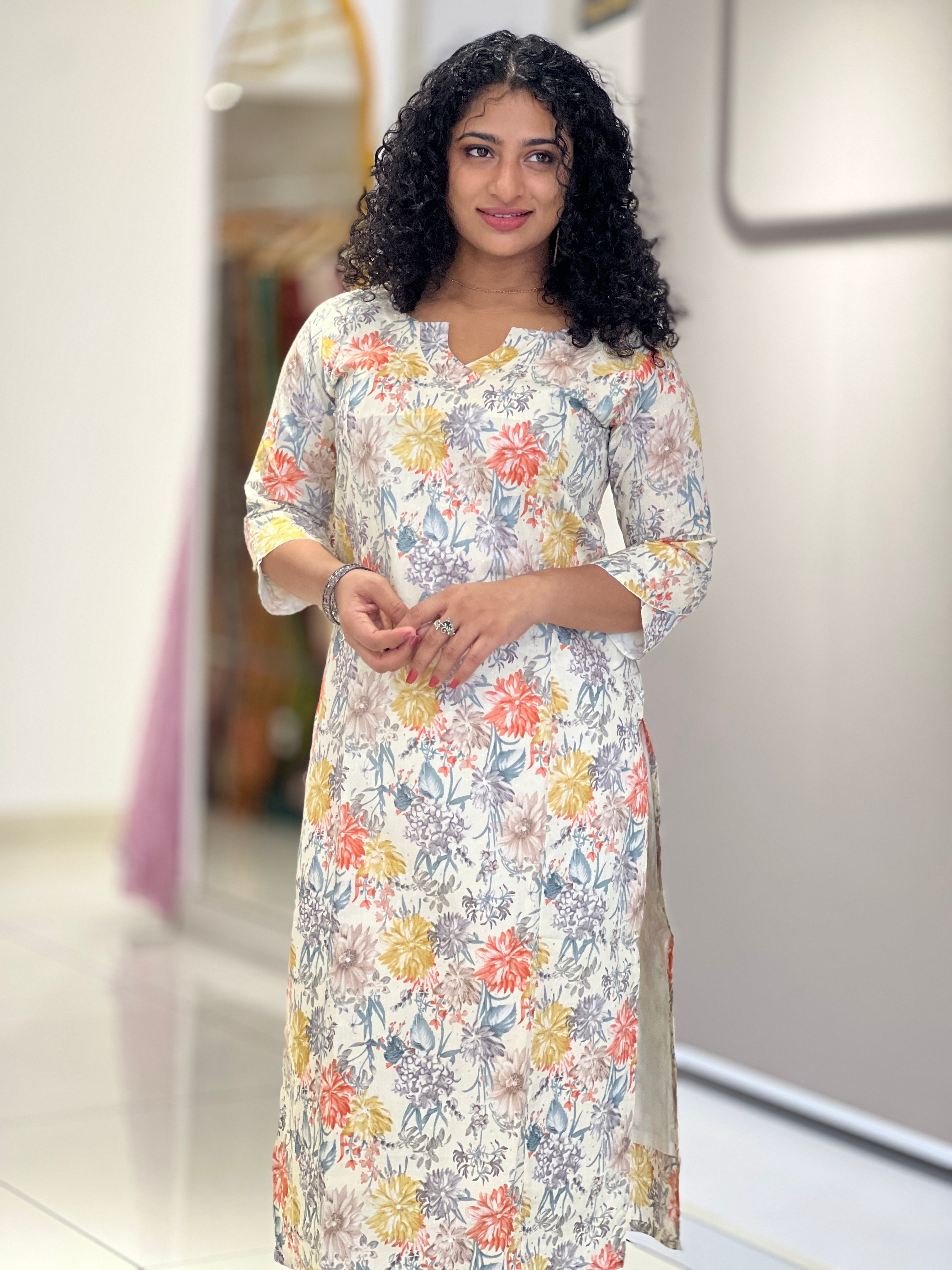 - Style: Floral Screen Printed , Side Slitted, Panel Detailing, With Lining, Khaddi Print