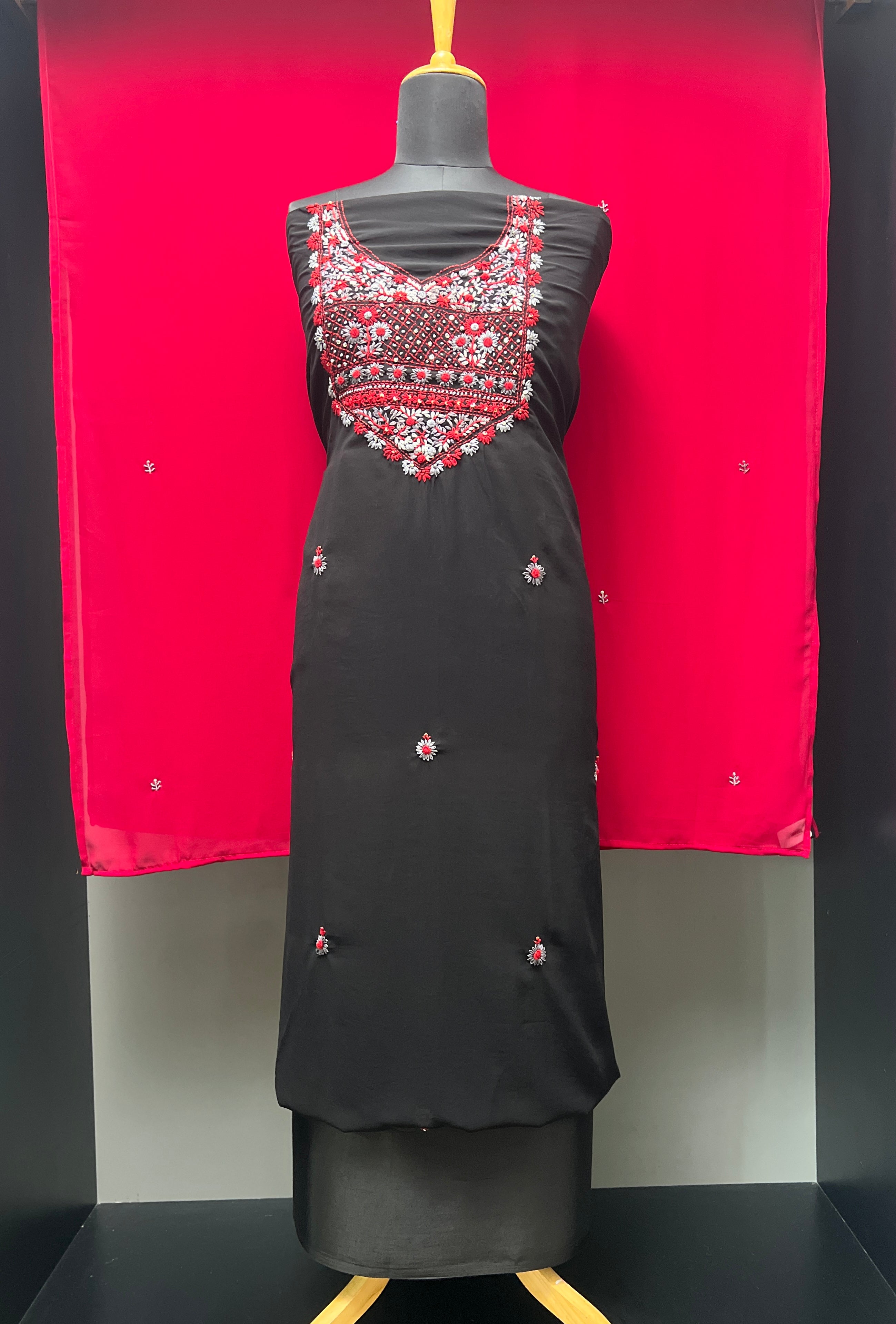 • Floral Thread Embroidered Georgette Salwar Set | SBP1038
