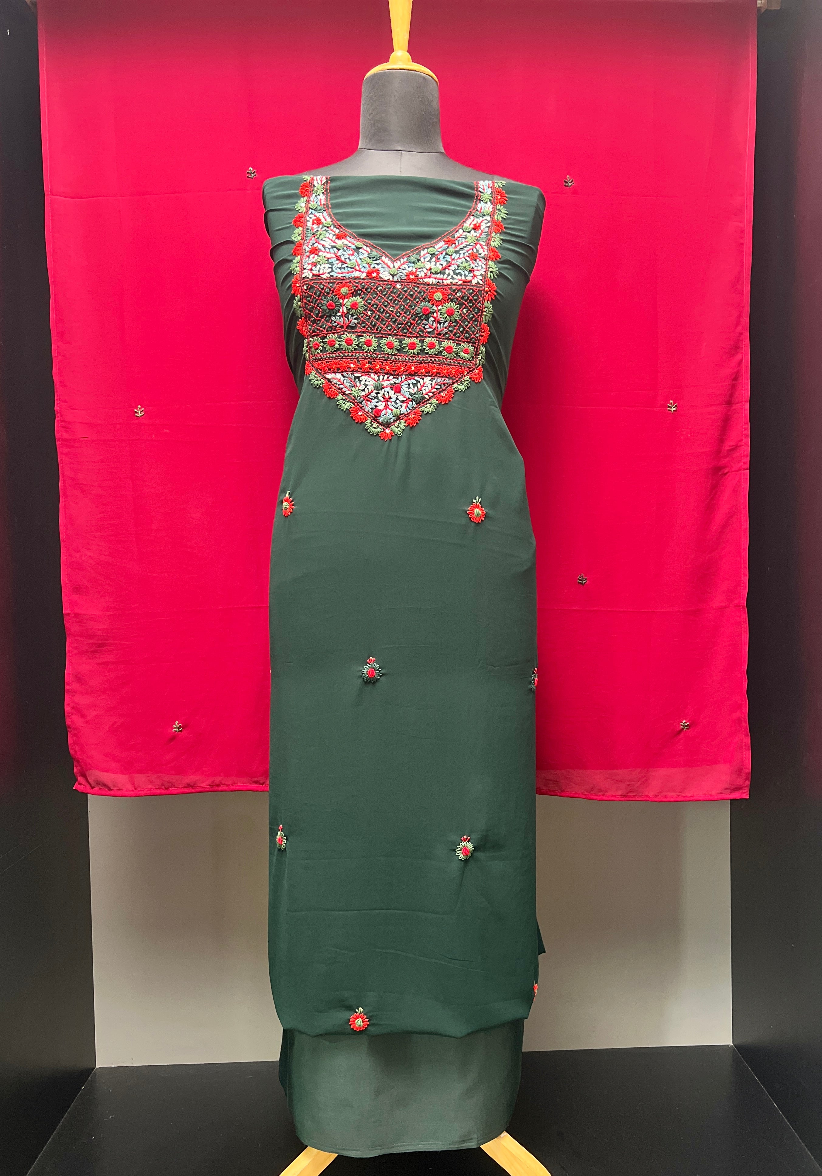 •  Style: Multi-Color Thread Embroidery Detailed Yoke