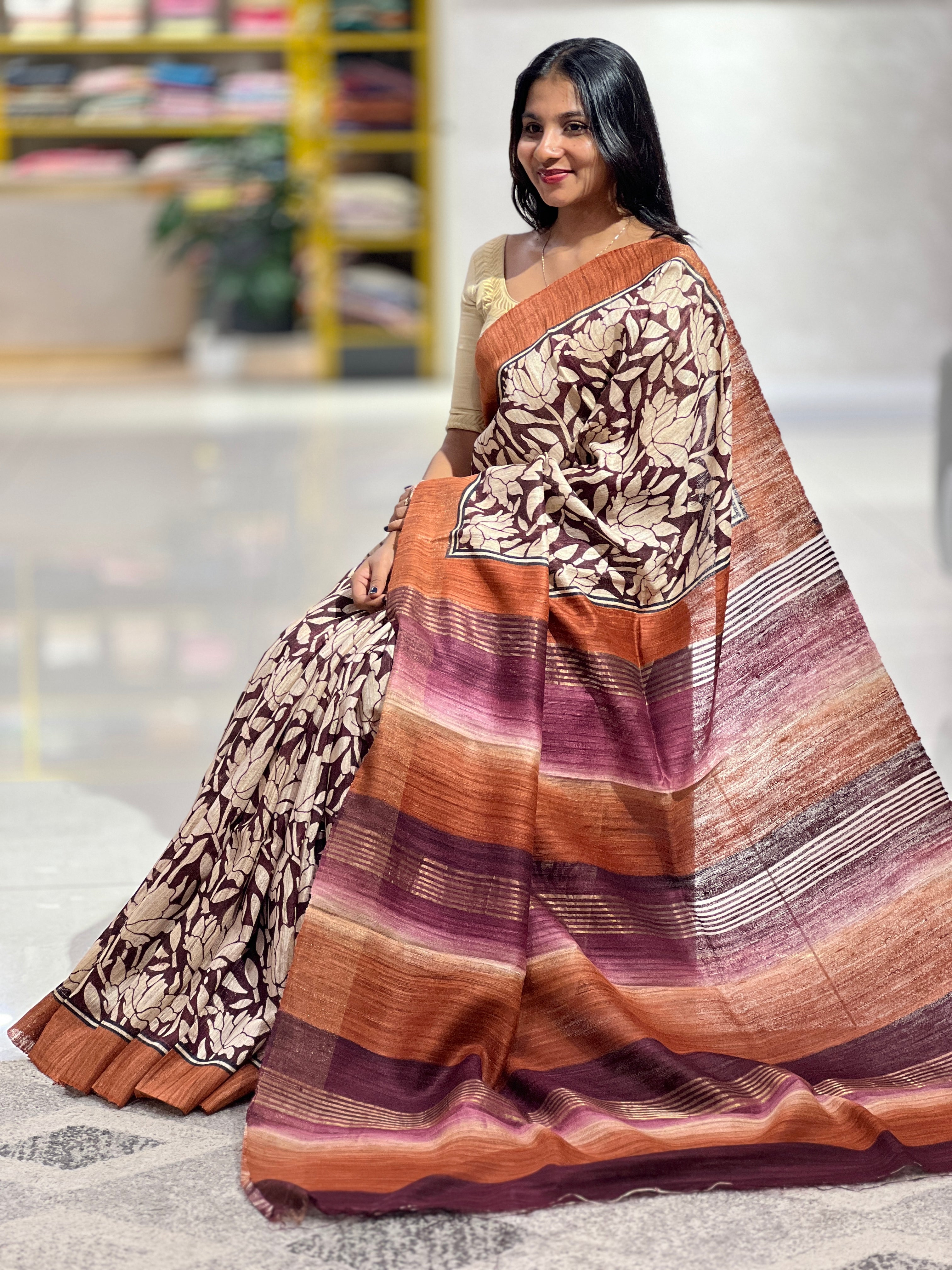 - Style: Screen Printed, Zari Borders, Zari Stripe Patterned Pallu , Floral Pattern