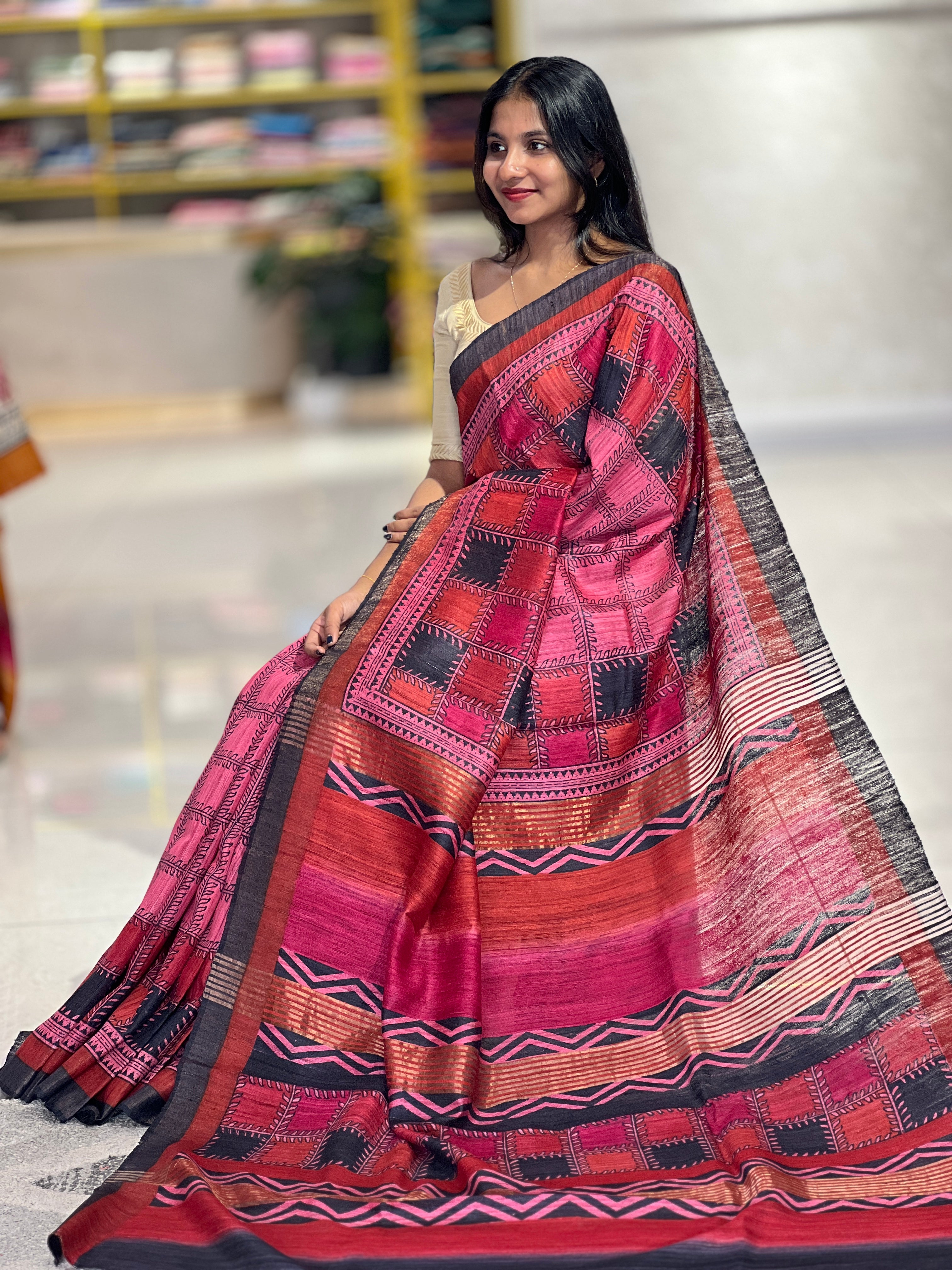 - Style: Screen Printed, Zari Borders, Zari Stripe Patterned Pallu With Print
