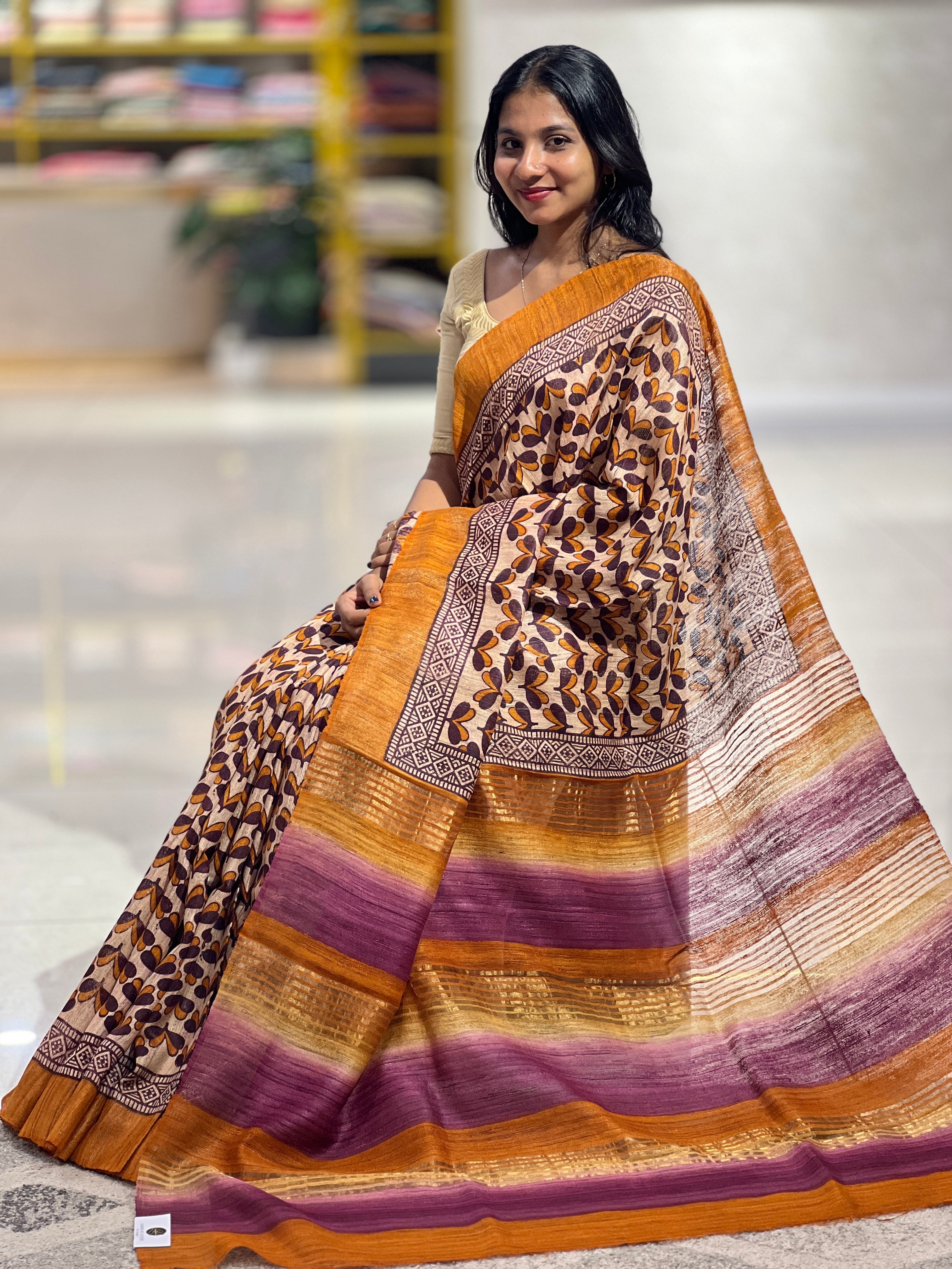 - Style: Screen Printed, Zari Borders, Zari Stripe Patterned Pallu , Floral Pattern