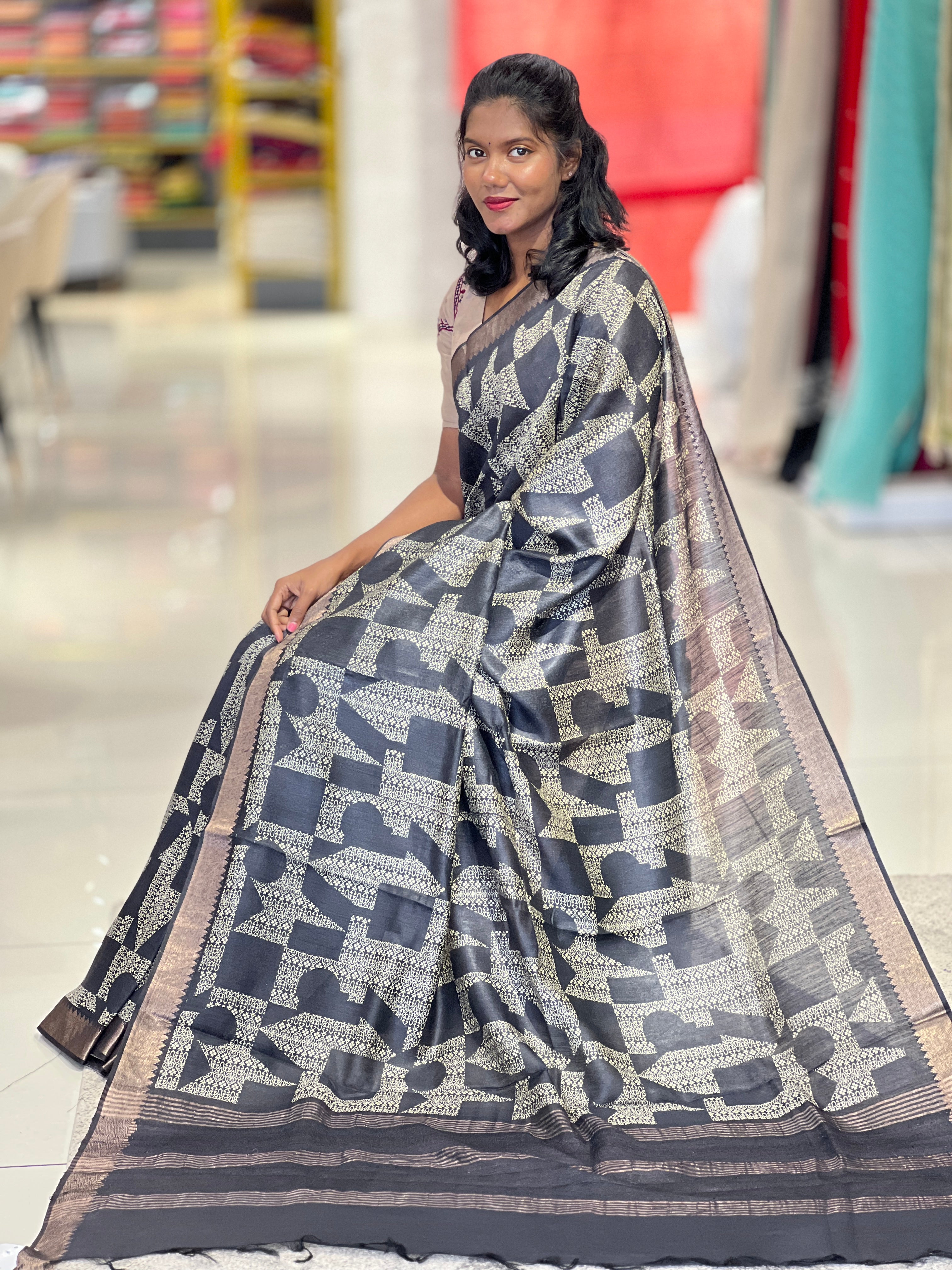 - Style: Abstract Geometric Printed Pattern, Zari Borders, Geecha Pallu