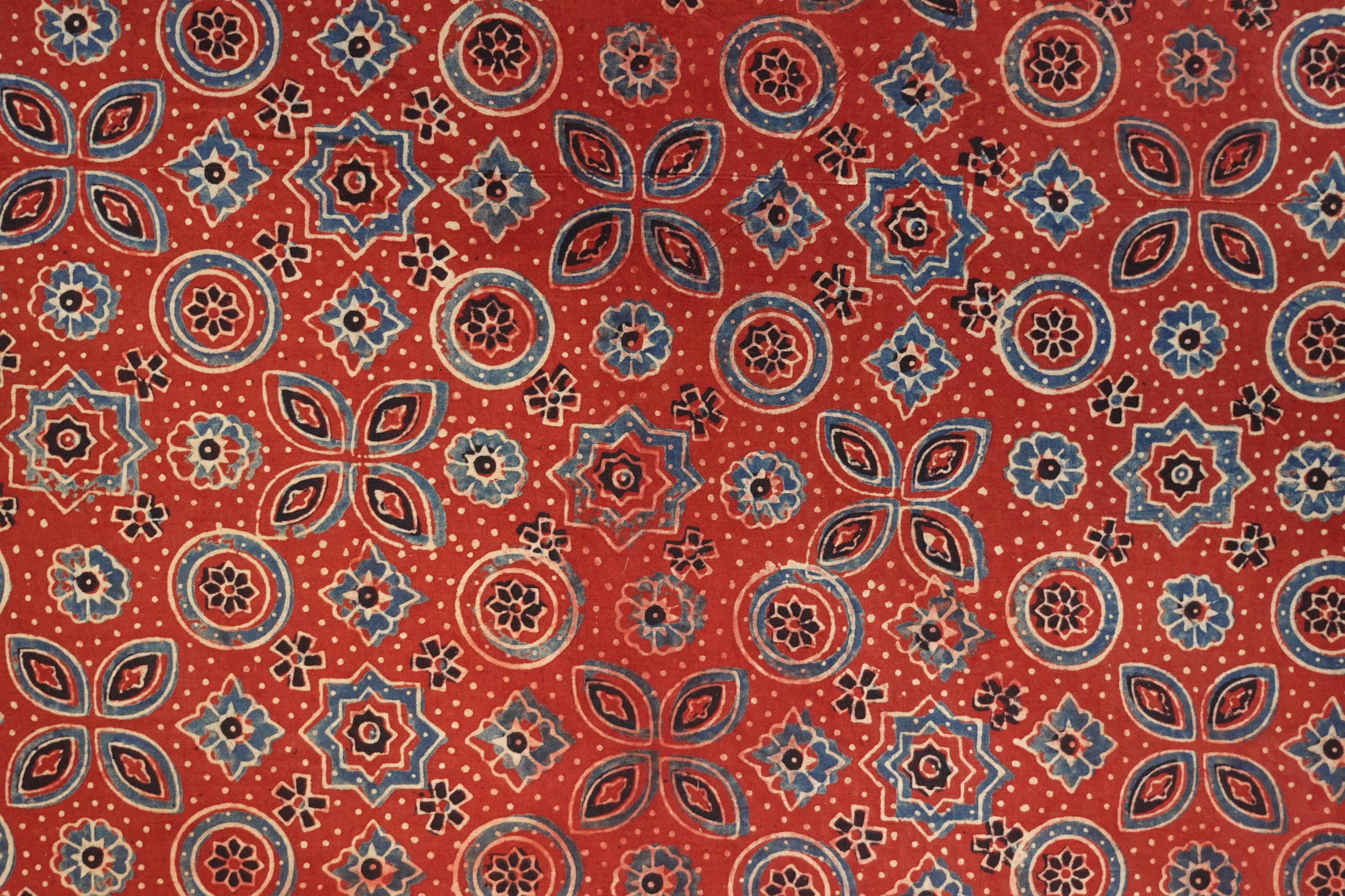 - Style: Ajrak, Geometric Floral With Polka Dots