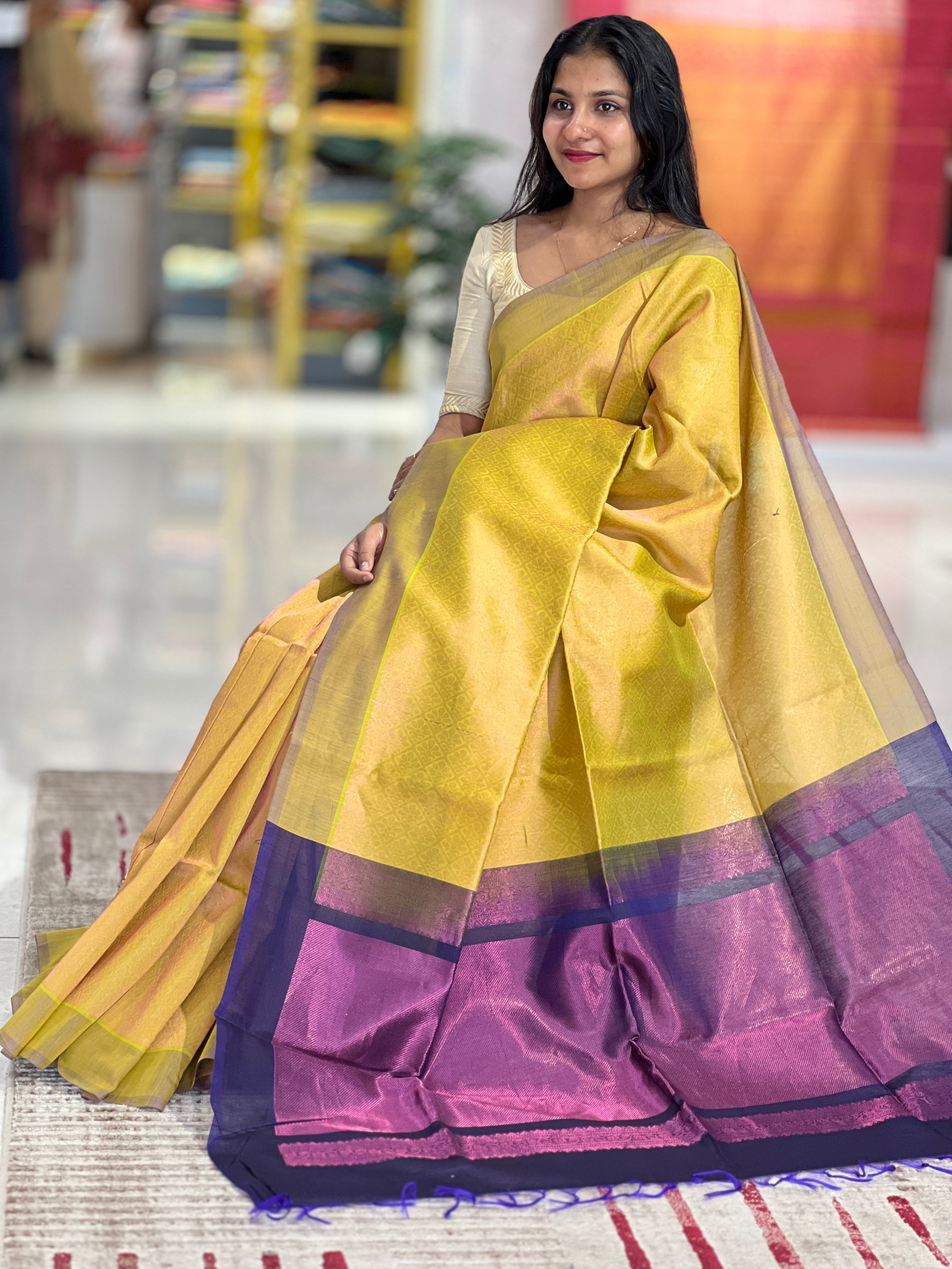 - Style: Zari Weaved Design , Geometrical Pattern