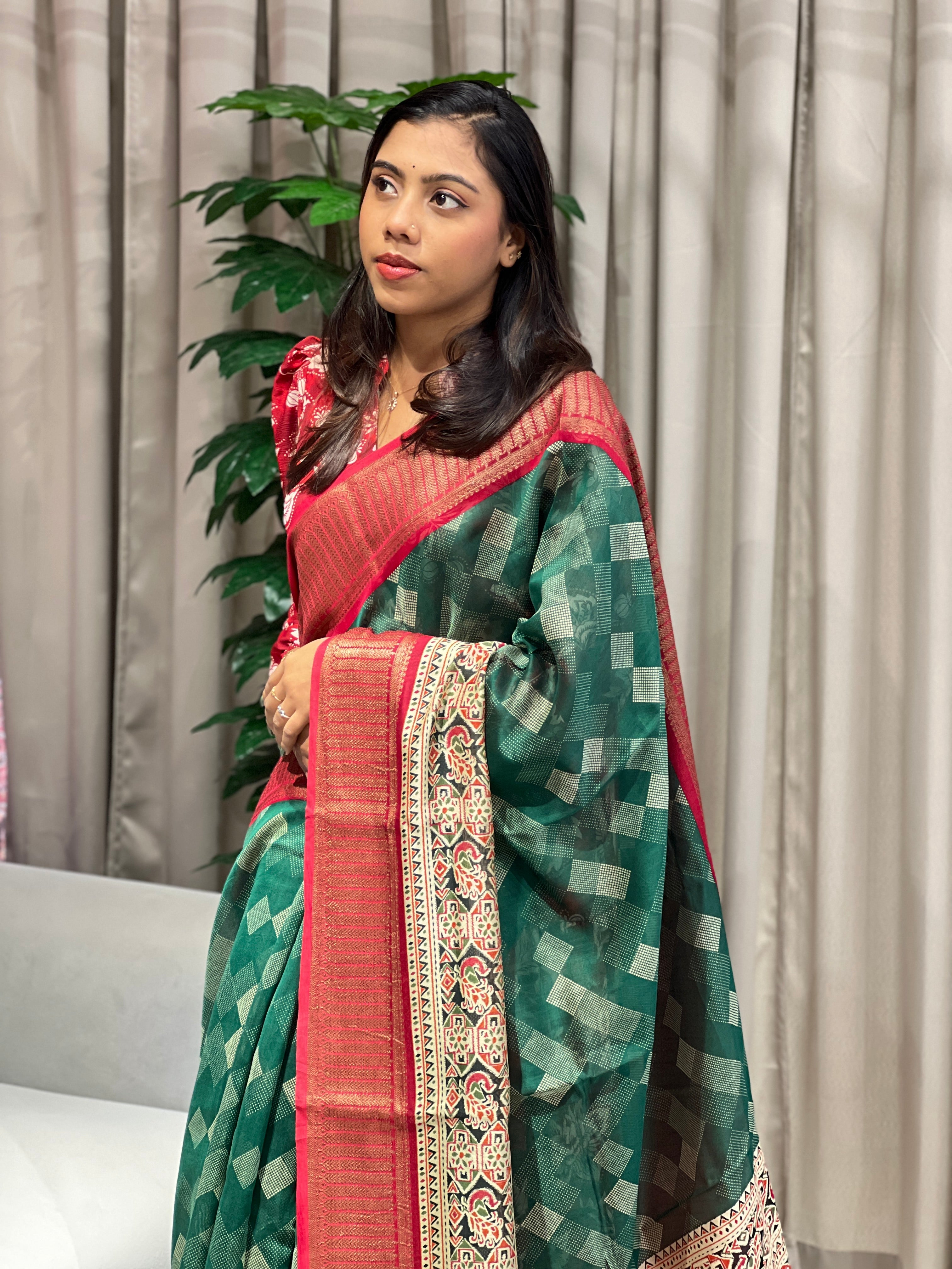 - Style: Geometric Printed, Pallu And Border Detailing