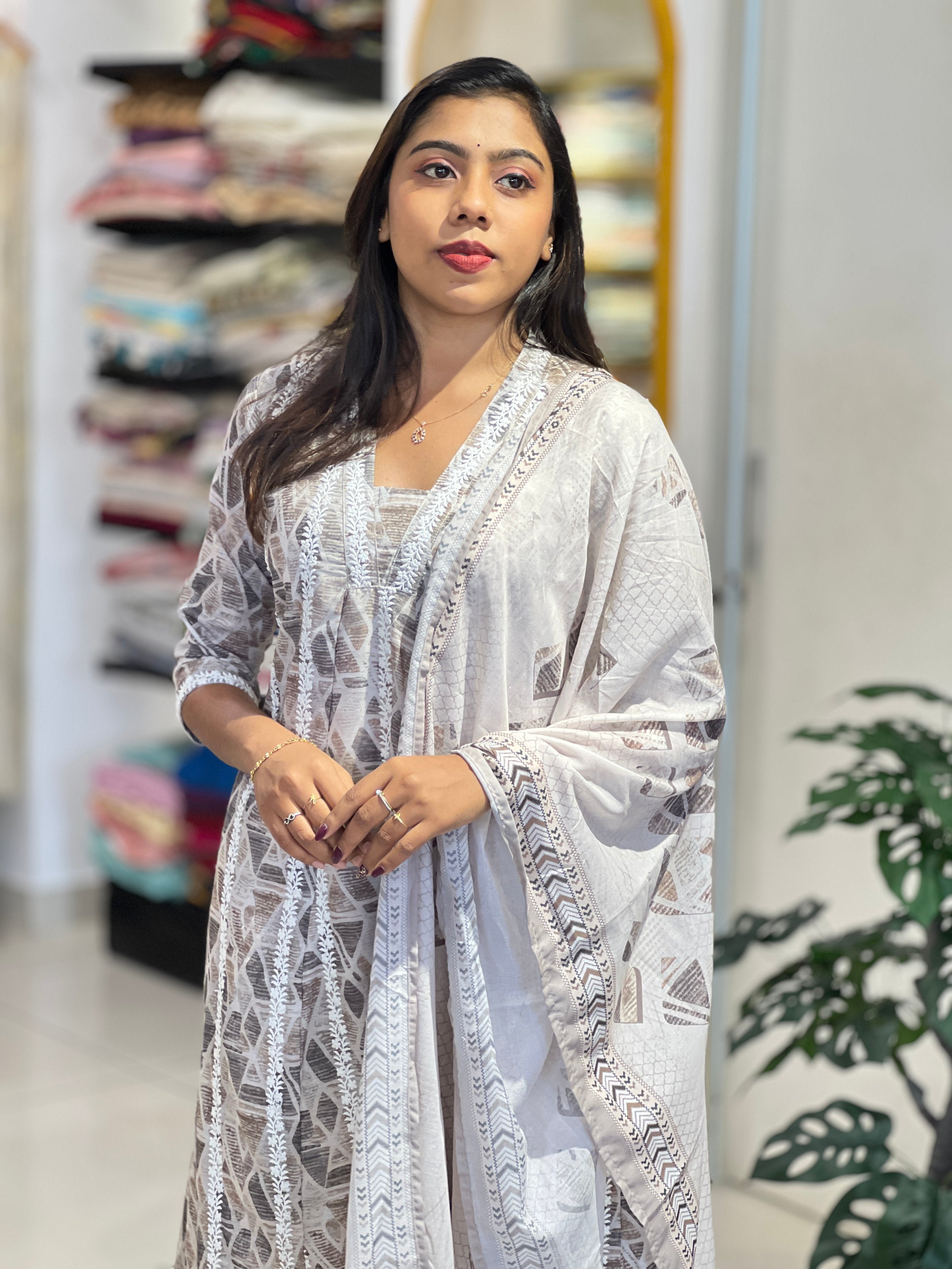 - Style: Panel Embroidery Detailing, Geometric Printed, Sequence Highlight, A- Line Pattern, Embroidered On Sleeve Border